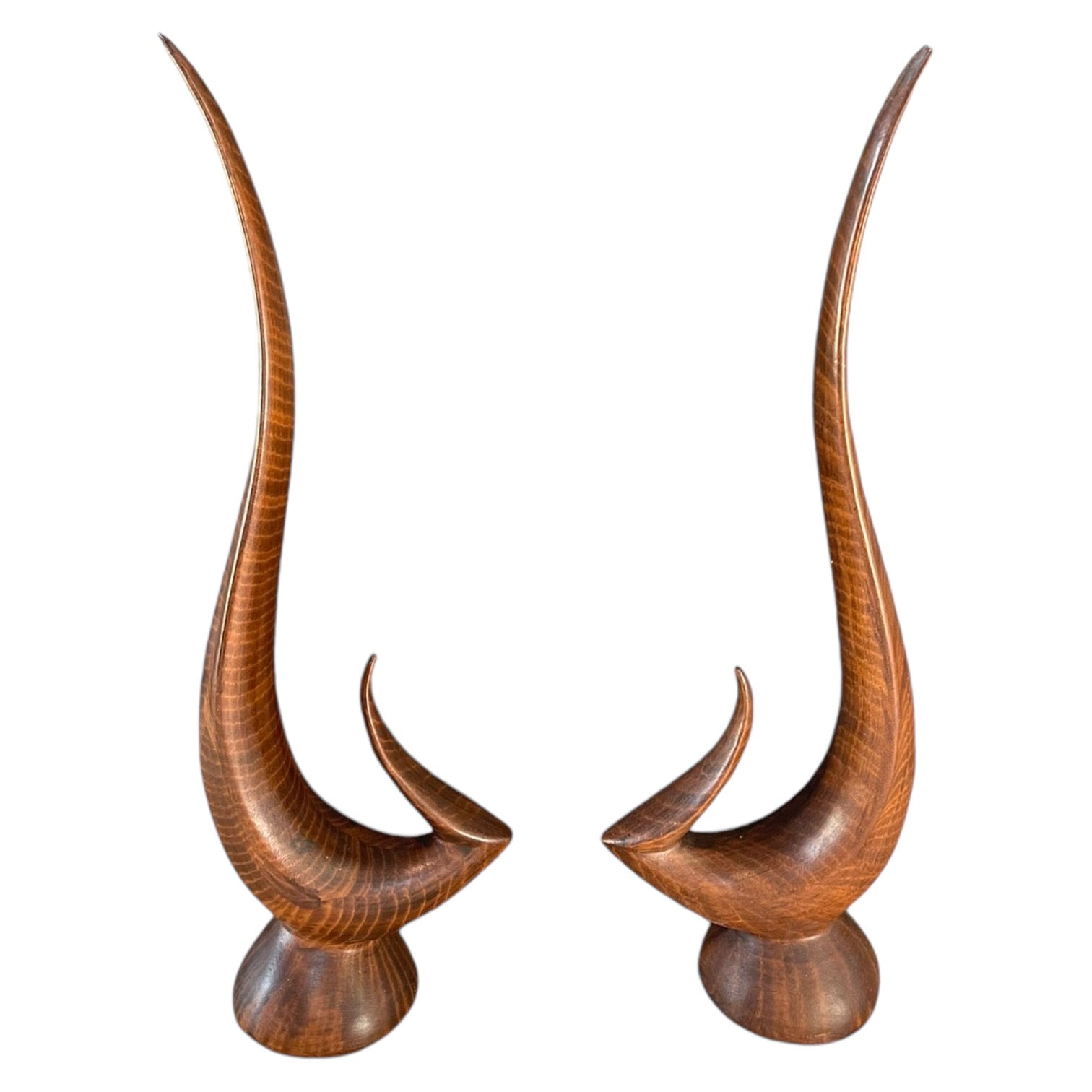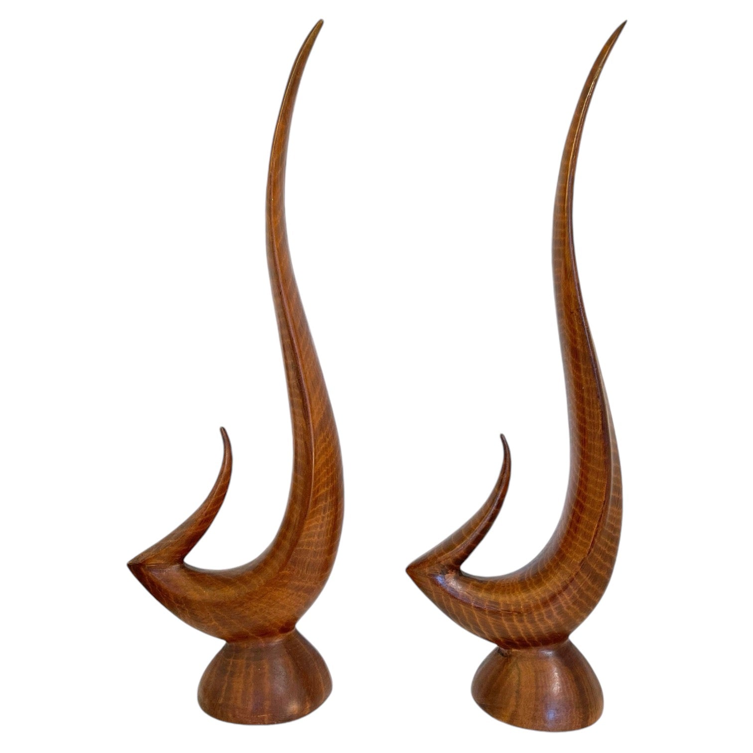 Not wood , Ceramic! These beautiful swan-like sculptures have a dance-like symmetry. Gorgeous shadows appear against any setting. Sleek and and soft lines. Excellent vintage condition. Marked S-440.