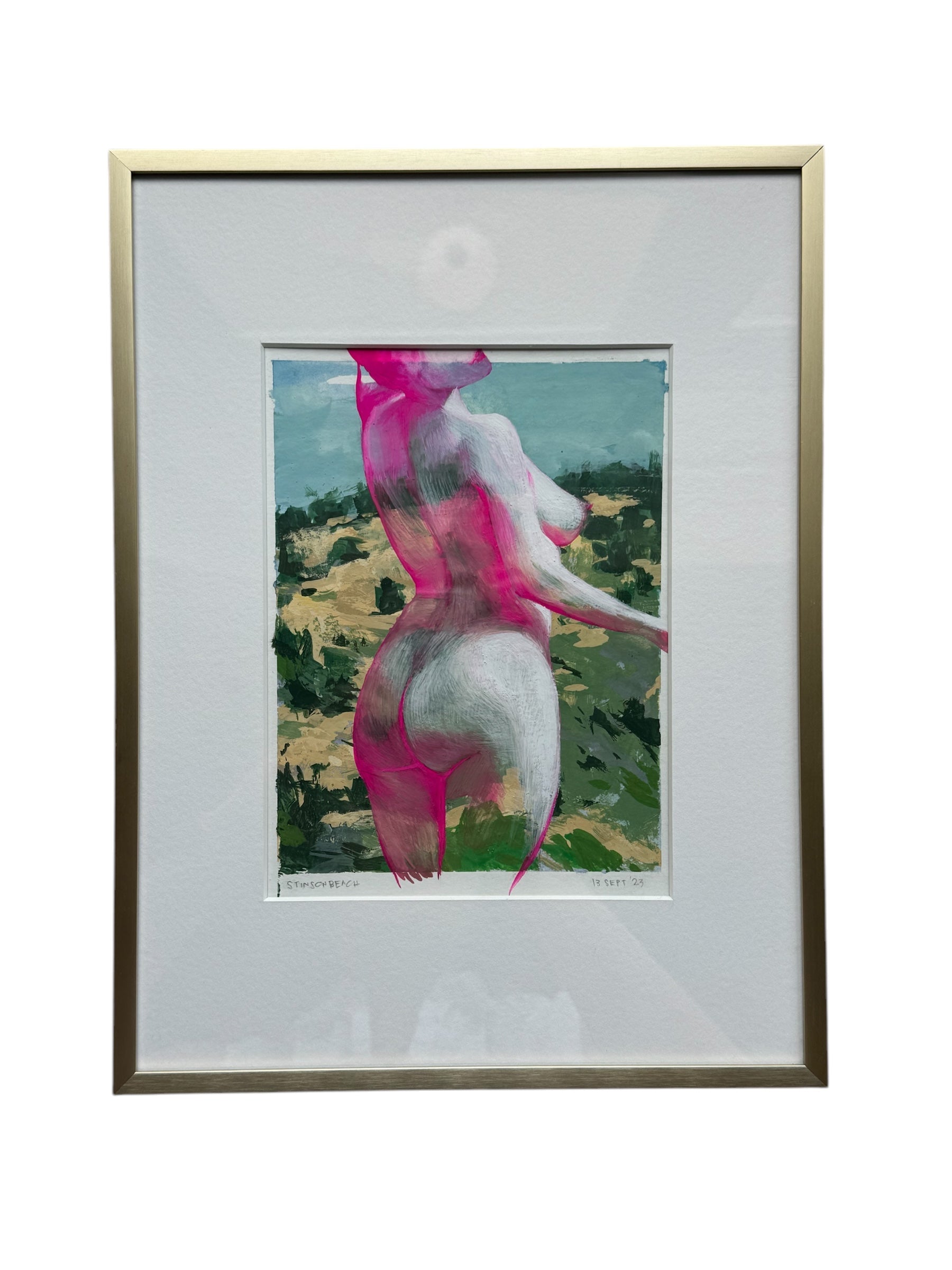Today, her work is guided by something deeper—more internal. Based in Mill Valley, Ondrea paints both en plein air and in the studio, chasing light in conversation with the land and in rhythm with the feminine form. Her pieces are composite moments: a tree catching sun, a cliff glowing before dusk, tide breaks pulling into shadow, the body echoing the curves of a hillside. Nature leads, and she listens.