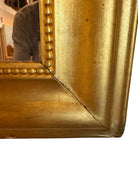 Emanating from the era of King Louis Philippe I, this mirror embodies the refined elegance characteristic of the period. The softly rounded frame, a hallmark of the Louis Philippe style, is crafted from wood and gesso, and finished in a rich gold paint, its warm luster enhanced by subtle beaded ornamentation. The piece wears its history with grace; both the frame, with its crazing and wear, and the mirror itself, with its gentle patina, lend a sense of authenticity and character. This mirror is a testament to enduring style, offering a sophisticated touch to any space, capturing the understated luxury that defines the Louis Philippe aesthetic.