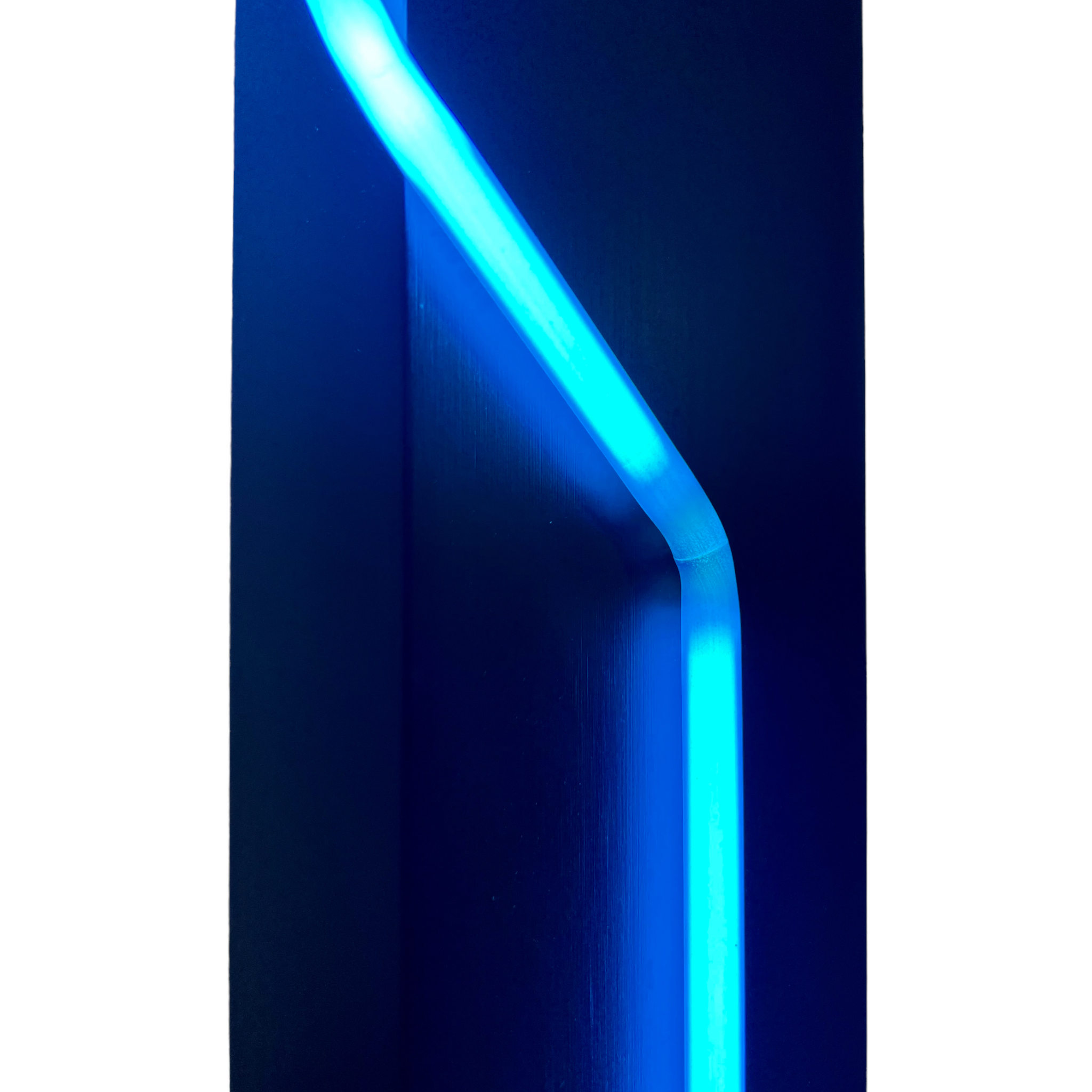 "Let There Be Neon." A blue neon sculpture as well as a floor lamp by Rudi Stern. A multimedia artist known for his work in neon. Iron base. Wired and in fabulous working condition. Great shape. No rust. A collector's piece. Excellent vintage condition.