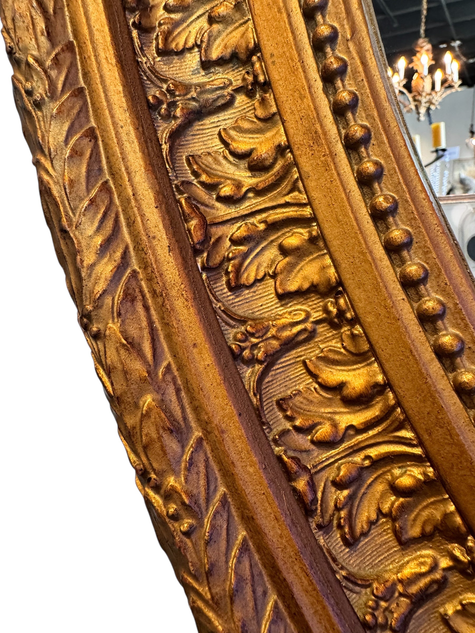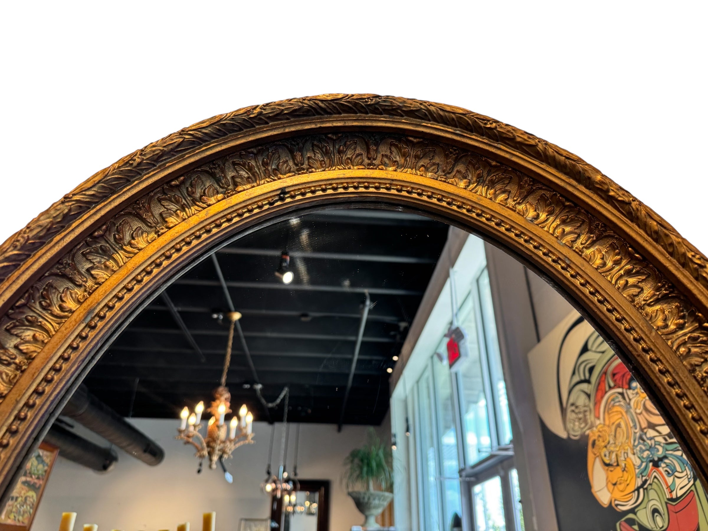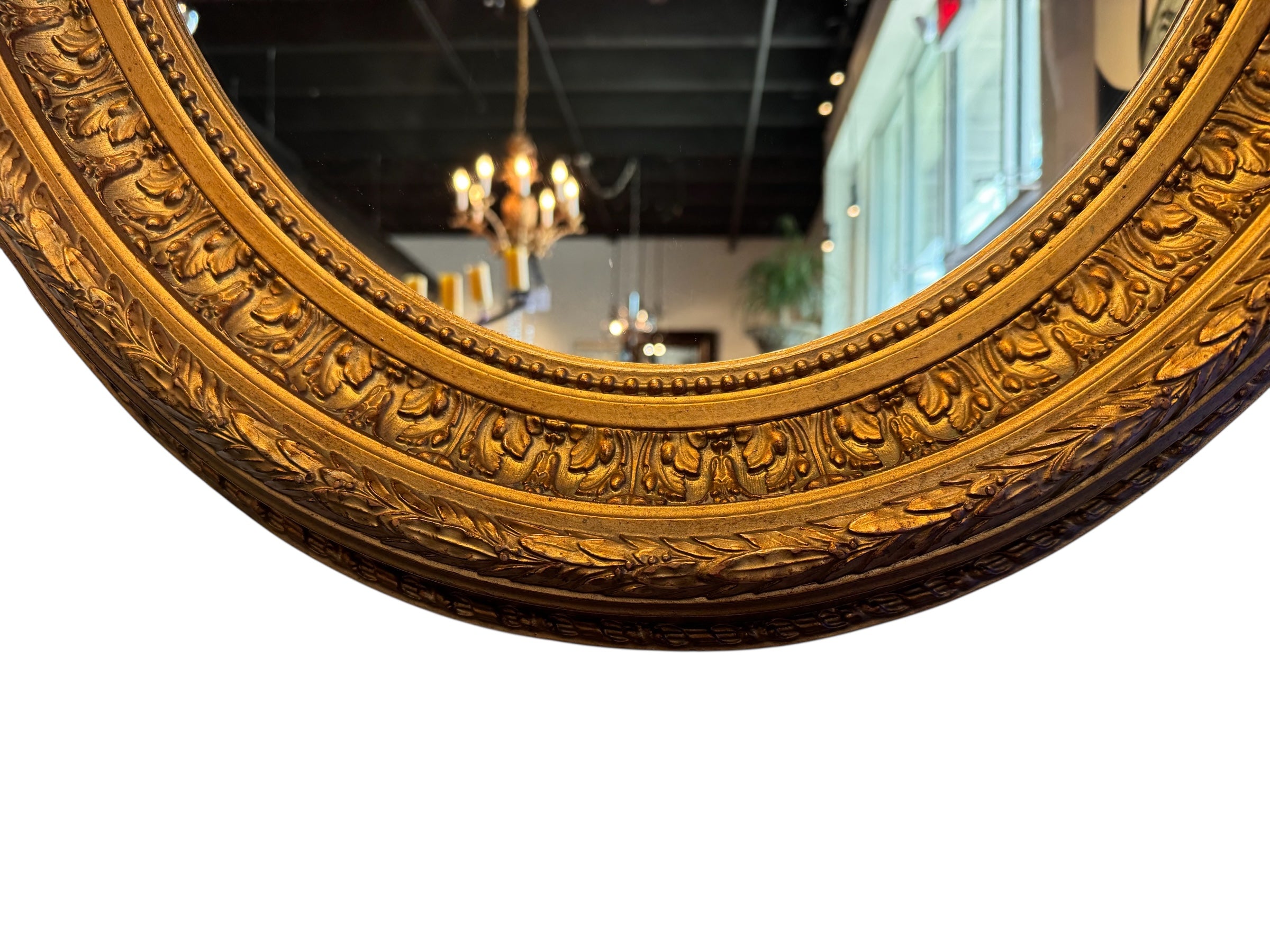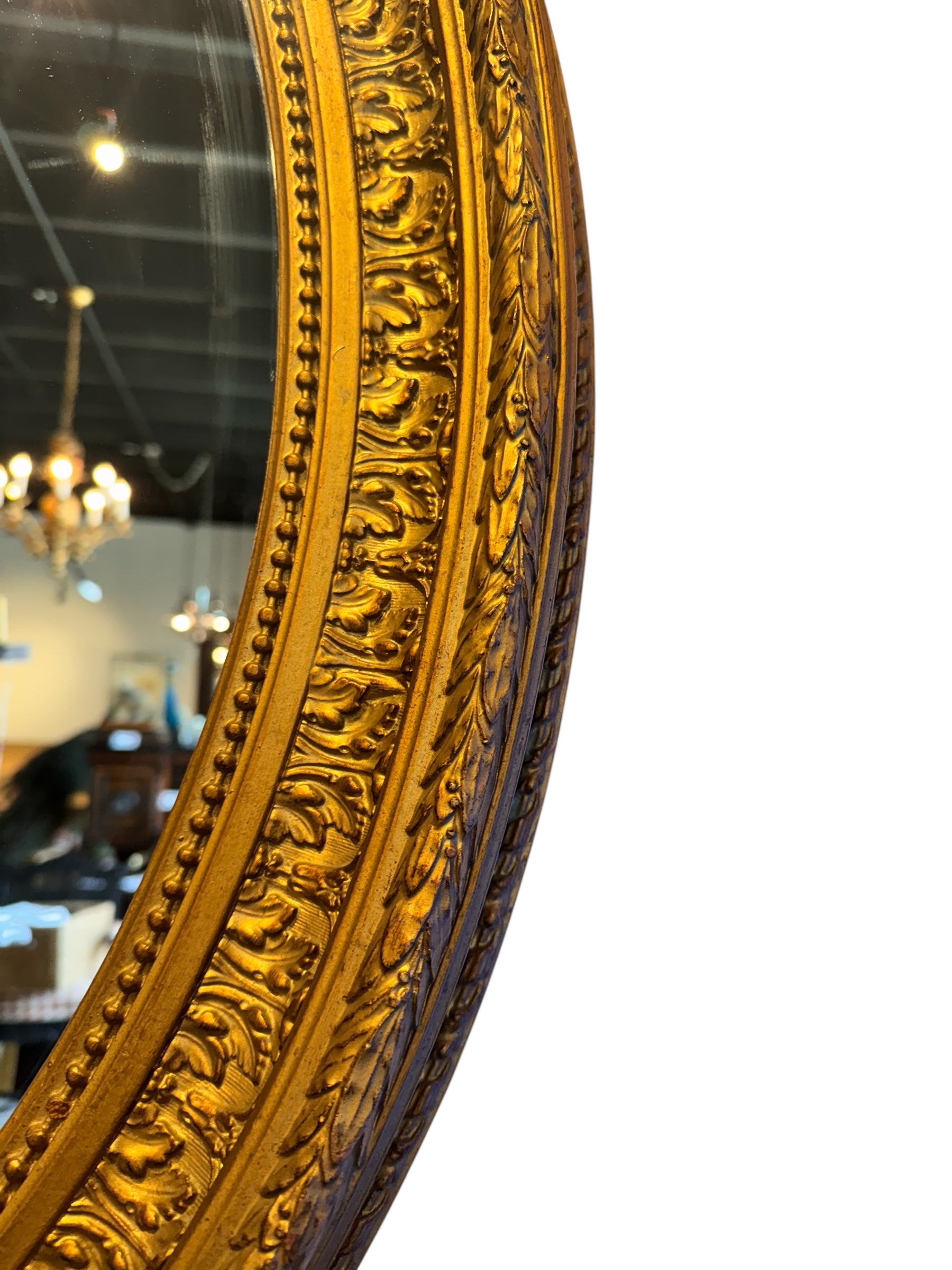 French oval mirror with elegant gold frame. Classic design with refined vintage charm, excellent condition.