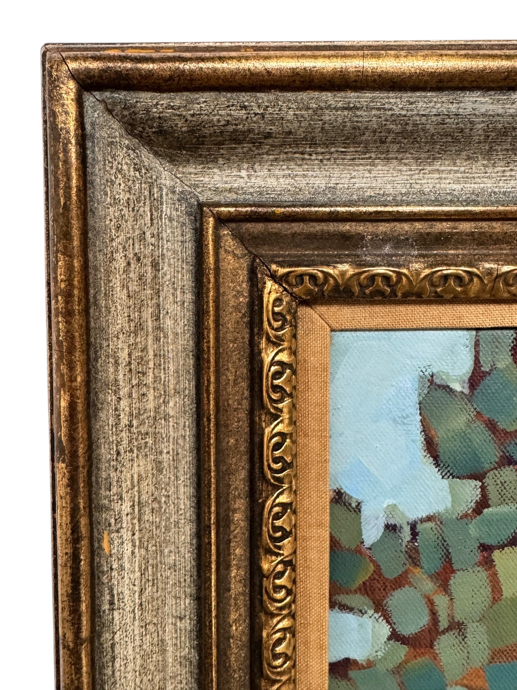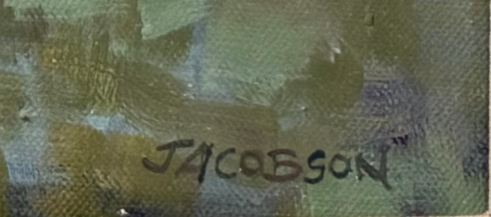 Beautifully presented within a luxuriant gold frame, its classic profile enhances the artwork's contemplative mood and timeless elegance. Jacobson, a 20th-century artist, delivers a work that feels both personal and distinctly modern, offering a refined focal point designed to transform any space with its quiet power and intimate charm. It is a testament to how nuanced brushwork and a compelling palette can evoke profound connection to the natural world. Oil on Canvas. Signed lower right. Titled and dated on verso.