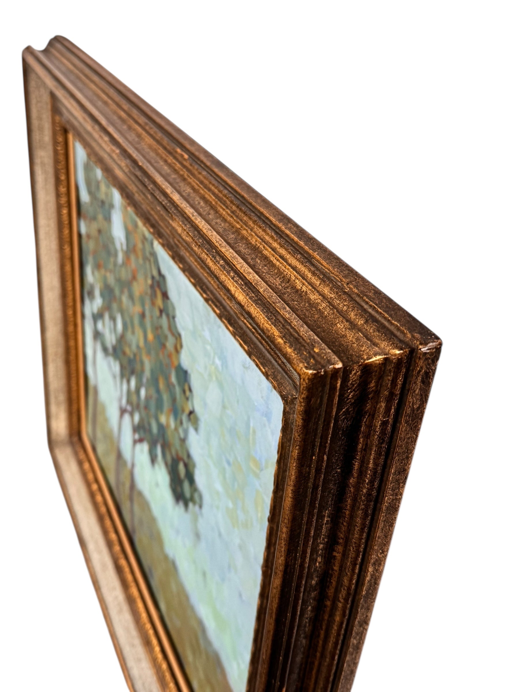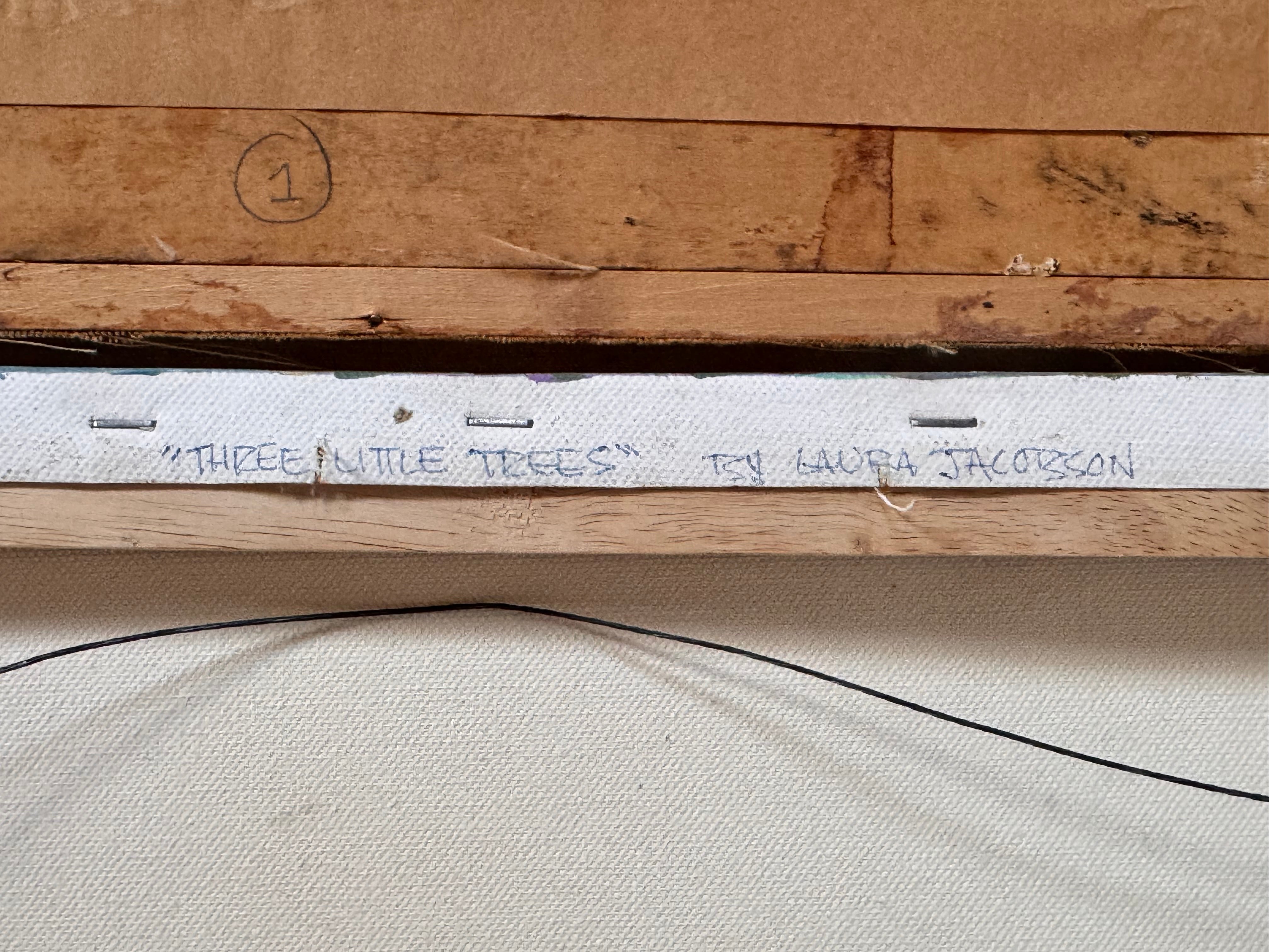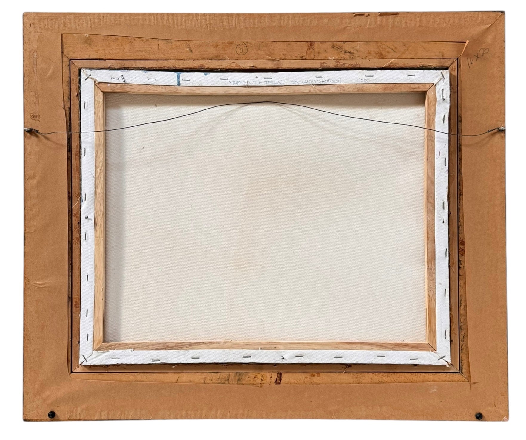 Laura Jacobson's Three Little Trees is an evocative study in abstracted realism, masterfully capturing a moment of quiet contemplation within nature. This splendid oil on canvas invites the viewer into an intimate landscape, where the familiar forms of trees are distilled into a captivating tapestry of texture and color.