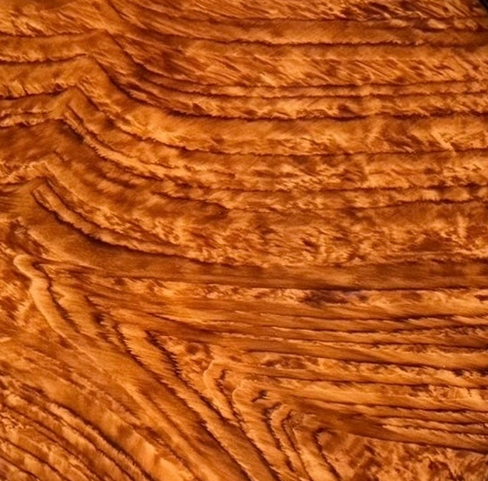 A striking example of Art Deco sophistication, this serving tray exemplifies the era’s "Streamline" aesthetic through a masterful combination of organic texture and polished geometry. The piece is defined by its central field of exhibition-quality burlwood veneer—likely maple or elm burl—selected for its dramatic, swirling grain pattern. This "peacock feather" figuring acts as the visual anchor, creating a dynamic sense of movement that was highly prized in the luxury interiors of the 1920s and 30s.