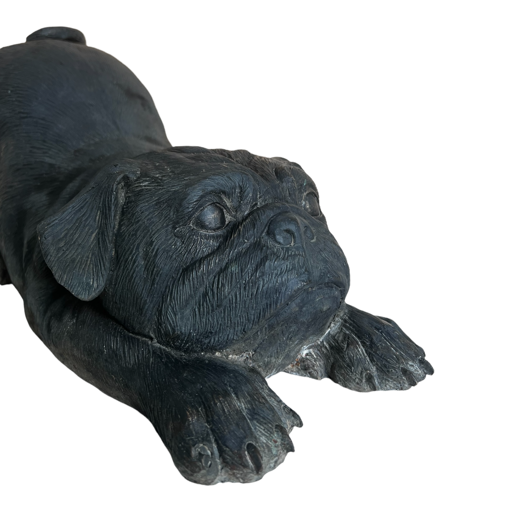 Este pug de tamaño natural está listo para jugar por dentro o por fuera. Gran condición de época. Pátina en todas partes. Latón.