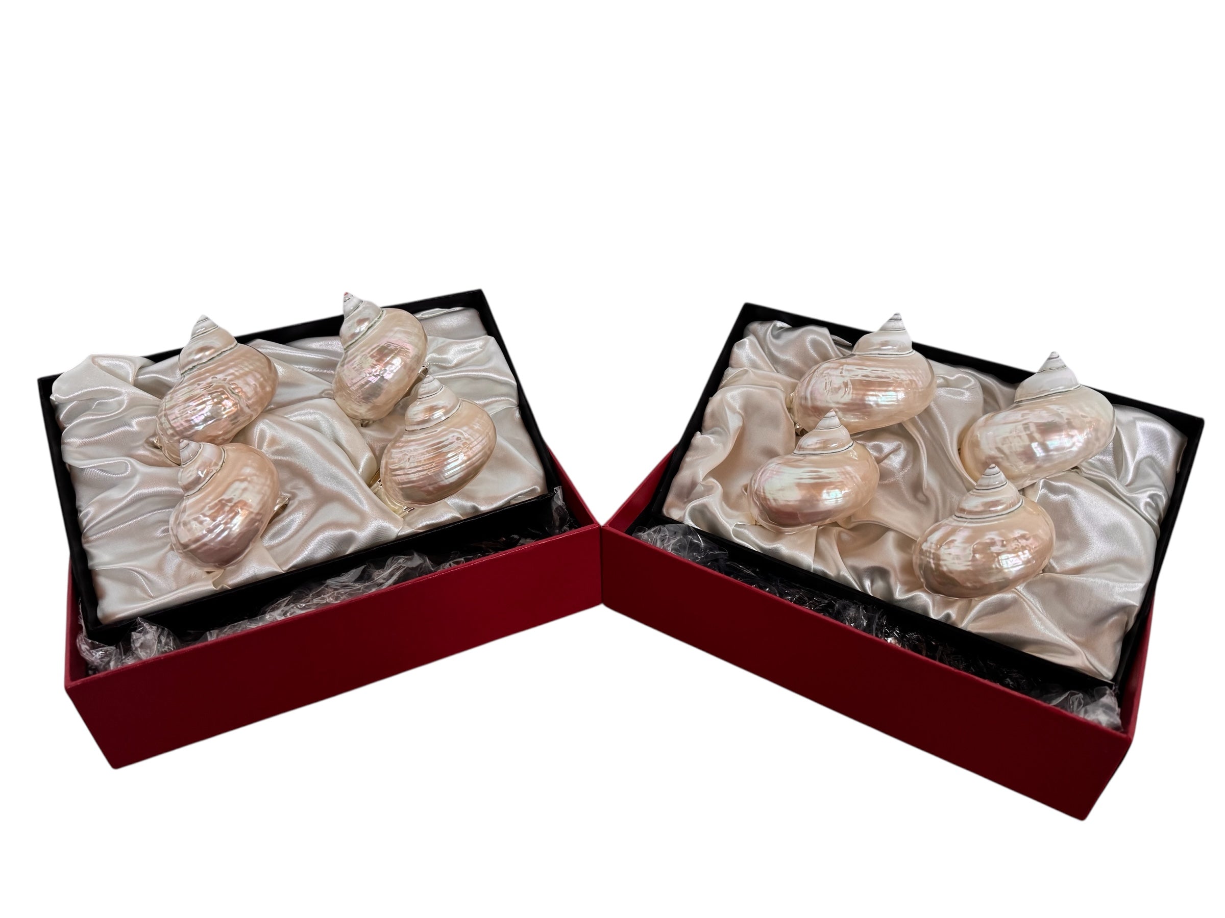 Hans Turnwald Pearlized Hermit Shell Napkin Rings in Original Box
