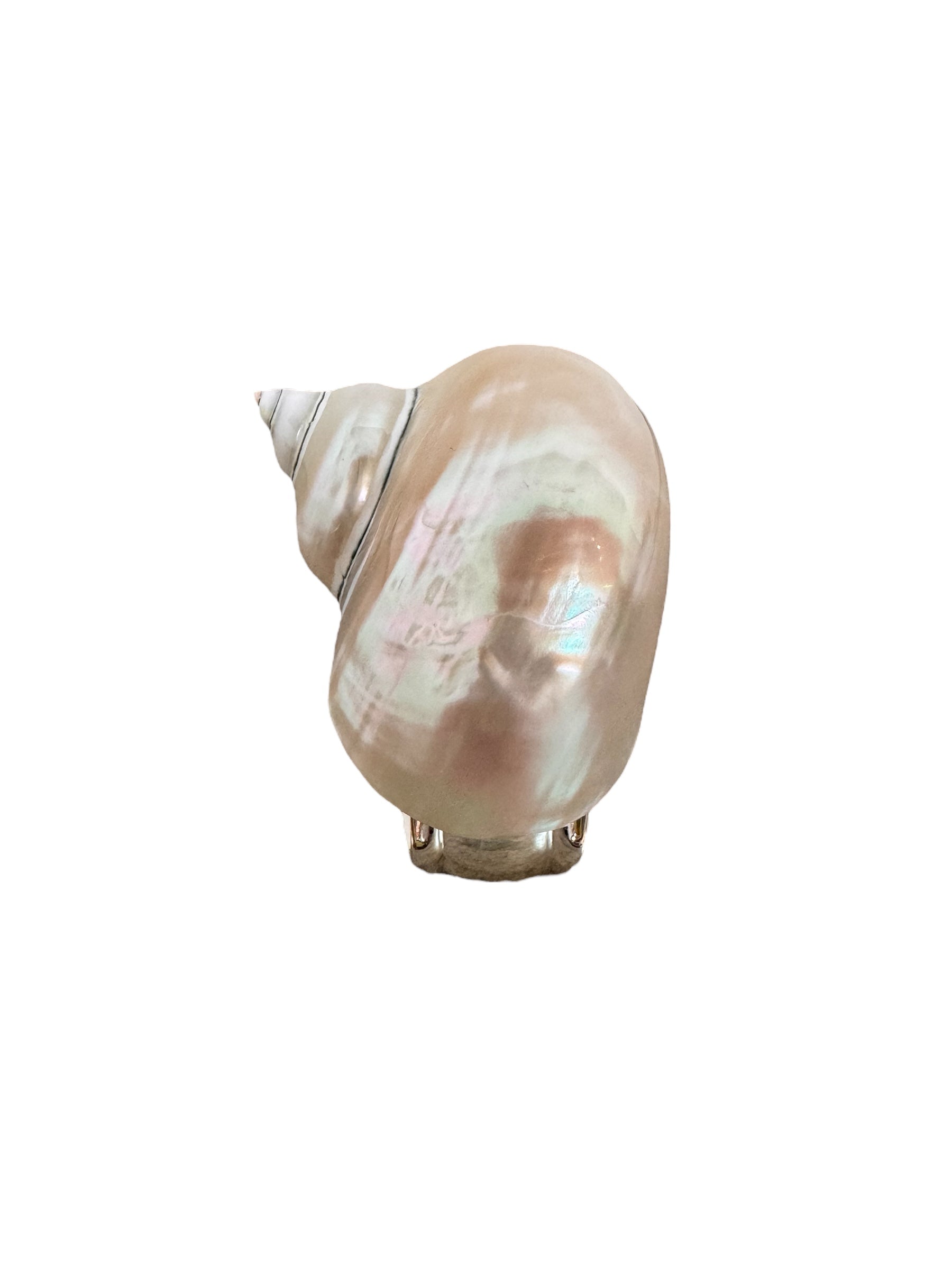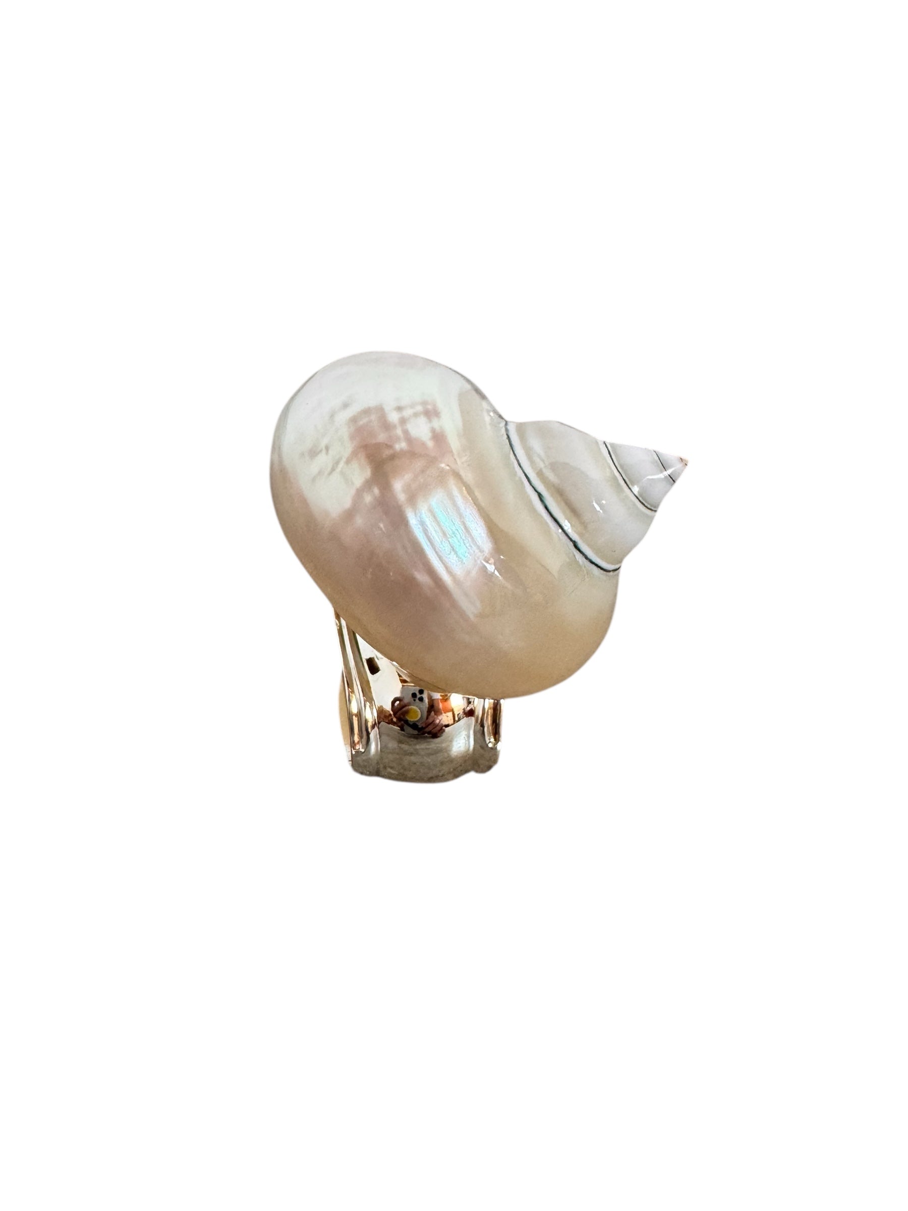 Hans Turnwald, with locations in Miami and Paris, was renowned for creating decorative items that captured a unique blend of sophistication and natural beauty. These napkin rings, with their delicate pearlized finish, exemplify Turnwald's signature style, transforming functional objects into objets d'art. The subtle variations in each shell create a tablescape that is both refined and organic.