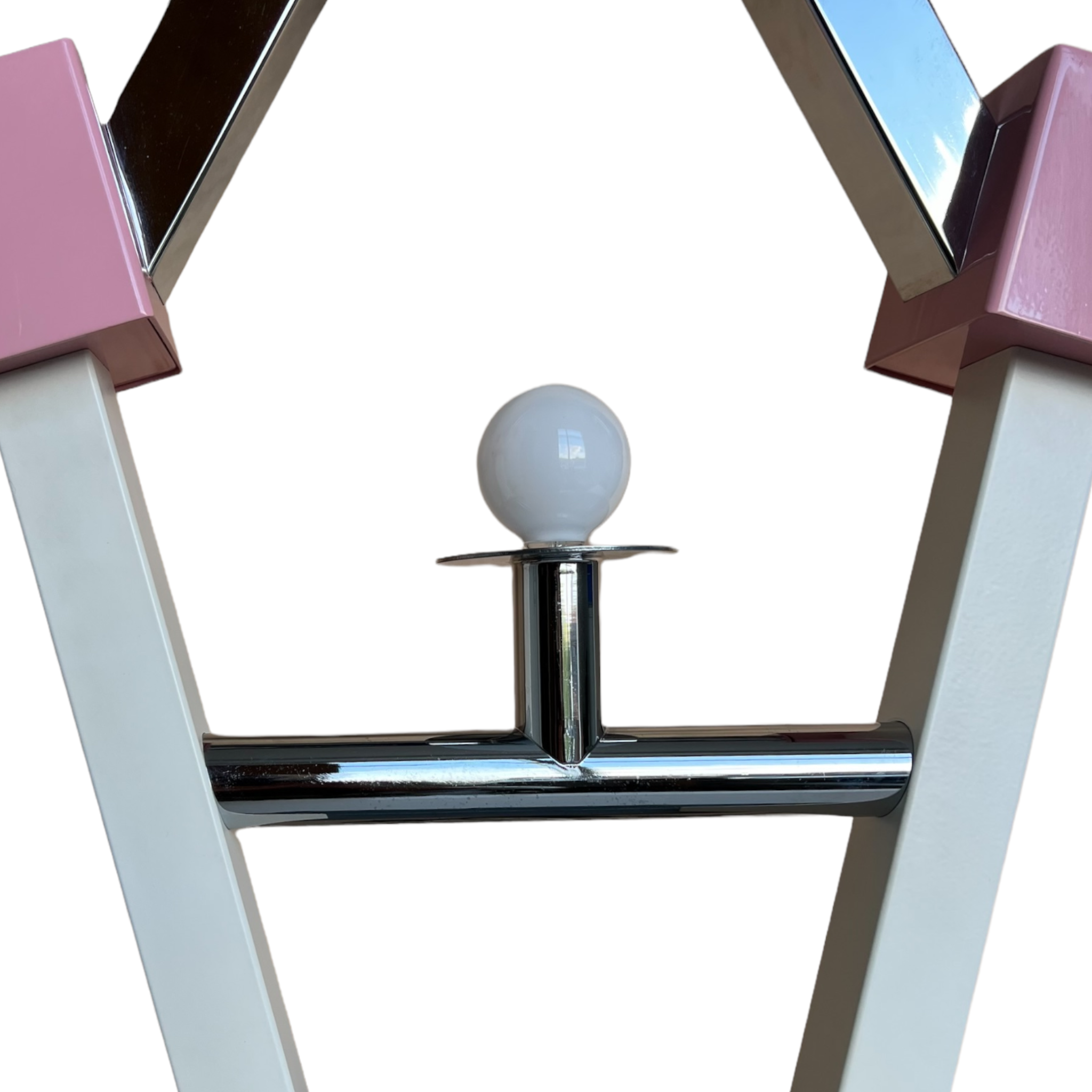 La lámpara de mesa 'Ashoka' es uno de los varios diseños de lámparas producidos por Ettore Sottsass para Memphis. En su forma, este es el lenguaje de diseño "tótem" más cercano a algunos de sus muebles, como el separador de ambientes Carlton y el aparador Casablanca.