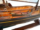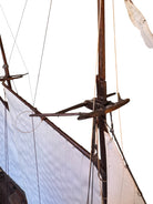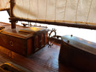 A unique and highly engaging feature of this piece is its interactive design. The wheel and rudder are fully functional, allowing for a dynamic appreciation of the ship's steering mechanisms. This functionality, along with the detailed rigging and sail work, brings the model to life, offering a tangible connection to the art of sailing.