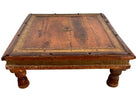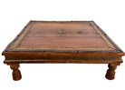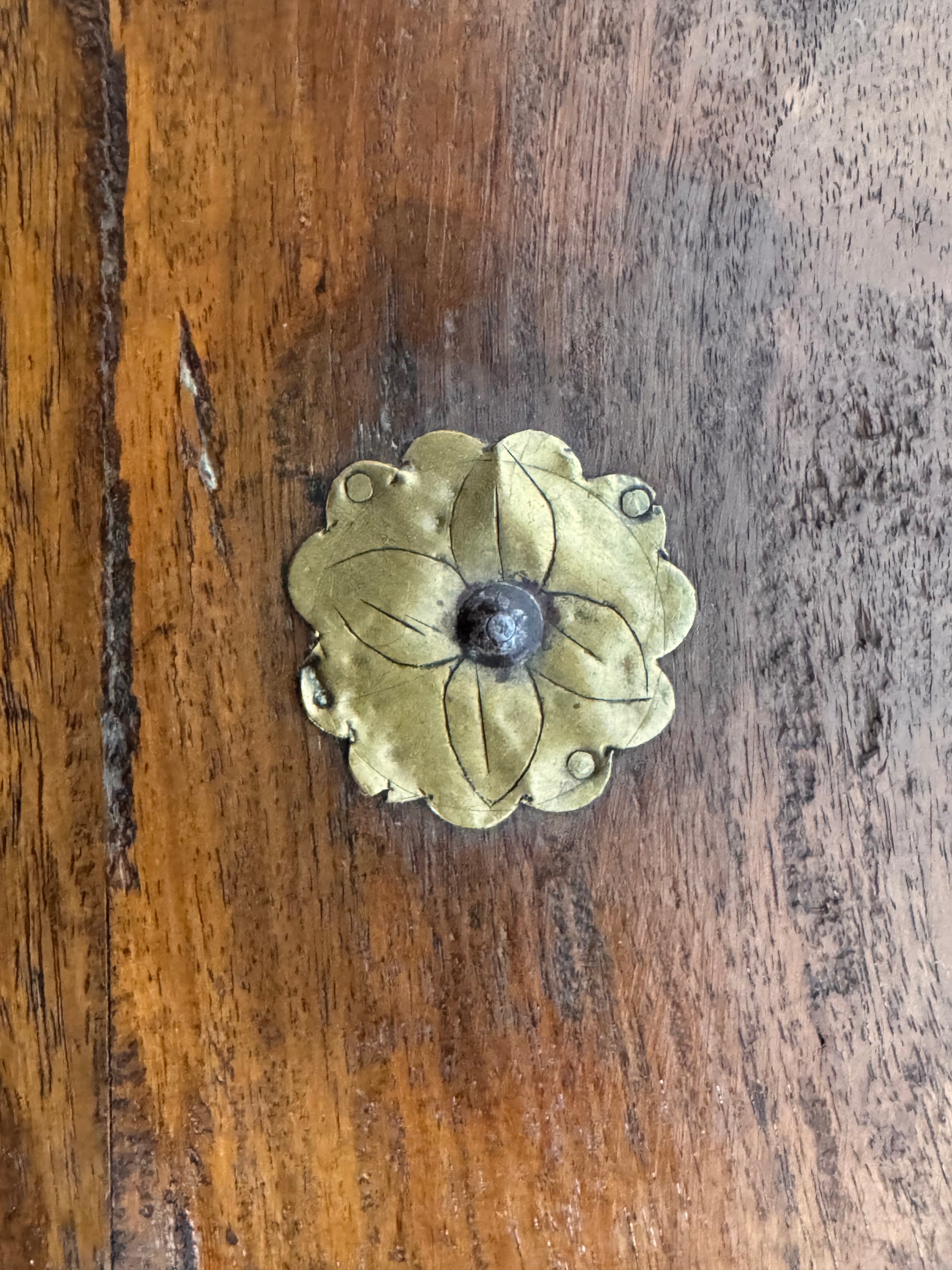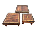 An exquisite triad of mid-20th-century Indian craftsmanship, this set of three nesting bajot (low tables) marries the rustic warmth of solid teak with the opulent texture of hand-tooled metalwork. Originating from the Rajasthan or Gujarat regions, these tables—historically used as ceremonial chowki platforms for dining or puja—have been reimagined here as a rare, stackable collection perfect for dynamic interior layering.