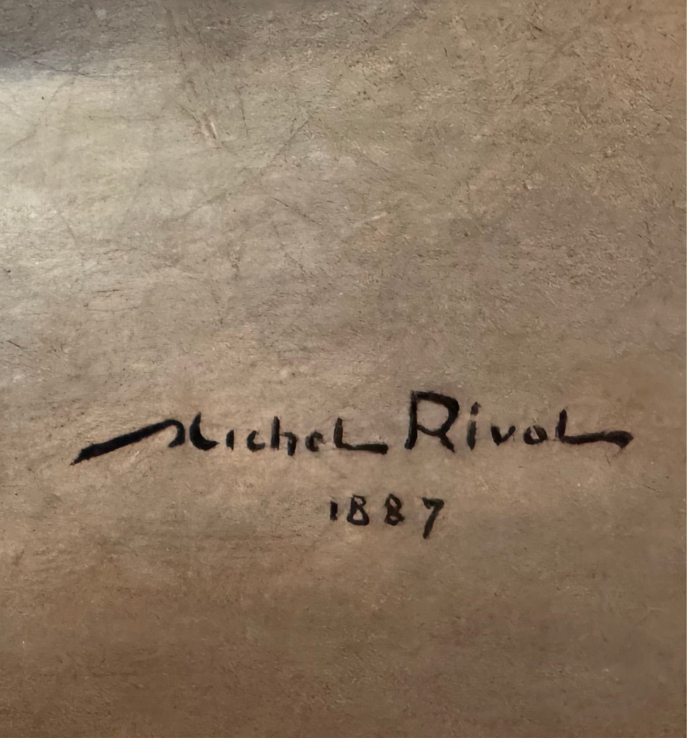 While Michel Rivol may not be a household name, this painting exemplifies the skill and artistic sensibility found among regional artists catering to the demand for decorative paintings during the late 19th century. The painting, lined, cleaned, and revarnished in 1976, bears a history of careful preservation, with stable craquelure that adds to its authentic character.