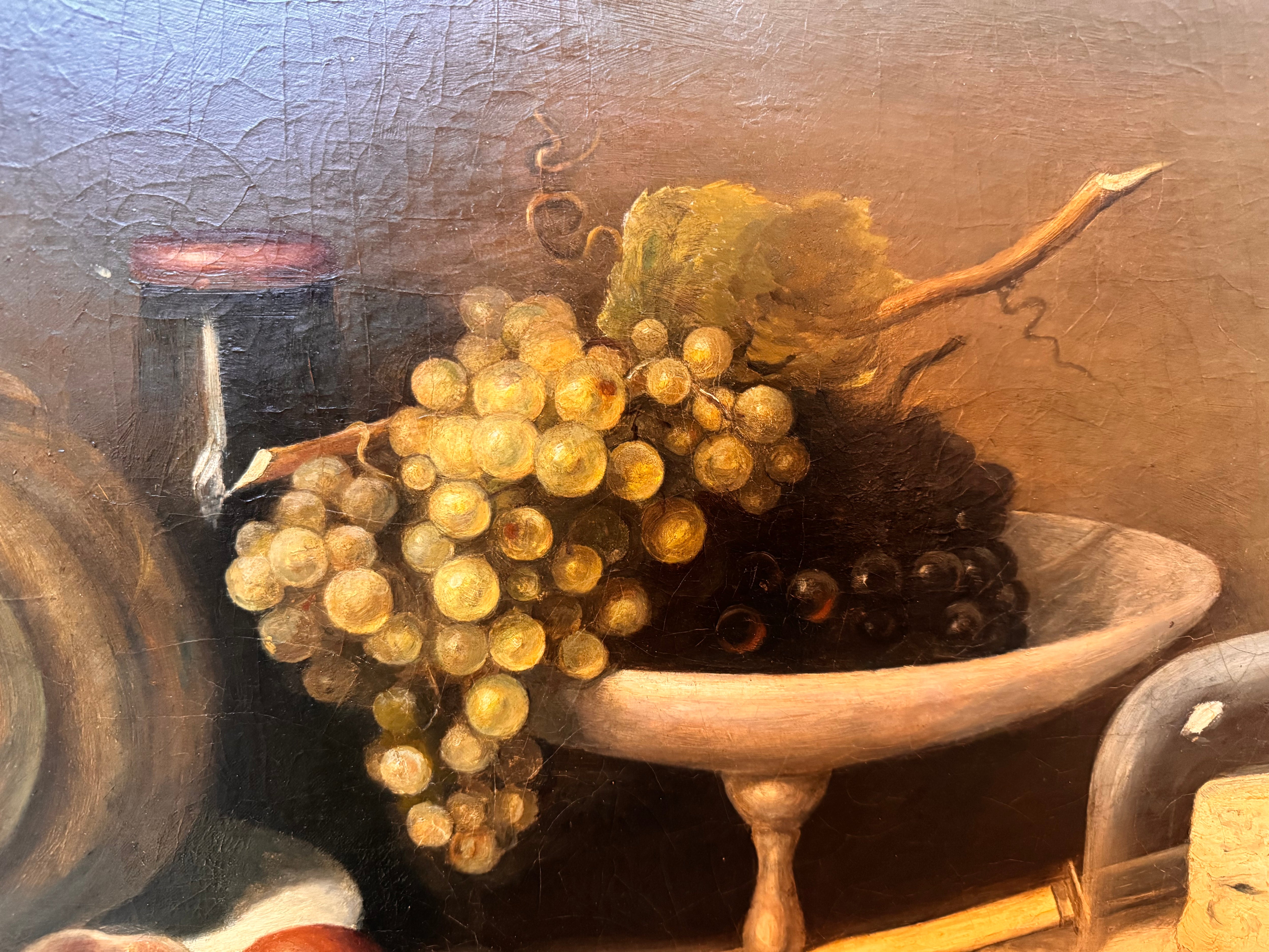 "Still Life with Fruit and Cheese" Oil Painting by Michel Rivol, 19th Century