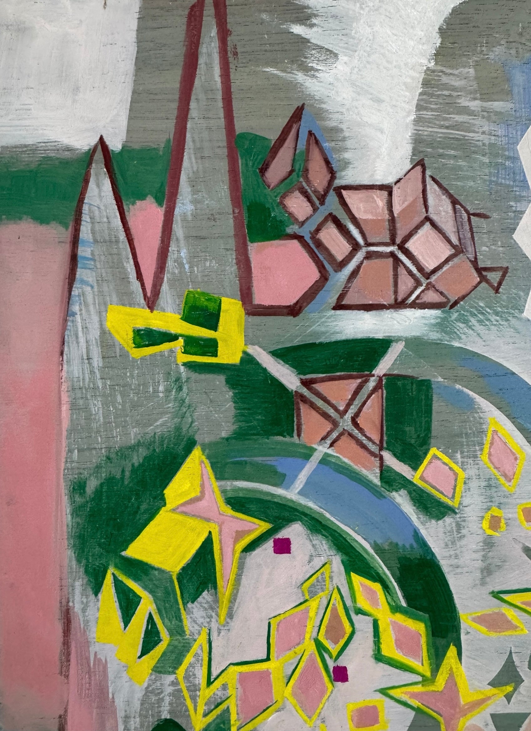 Robert’s work spans abstract pattern studies, allegorical compositions, and plein air landscapes of Mexico and the American Southwest. He paints from life—never photographs—using acrylic, oil, and watercolor. Grounded in real objects, his art explores contrasts and contradictions, blending graphic clarity with intellectual depth. As he puts it, “My work is decorative, yet aspires to weightiness—it reflects how my mind reacts to contemporary culture.”
