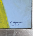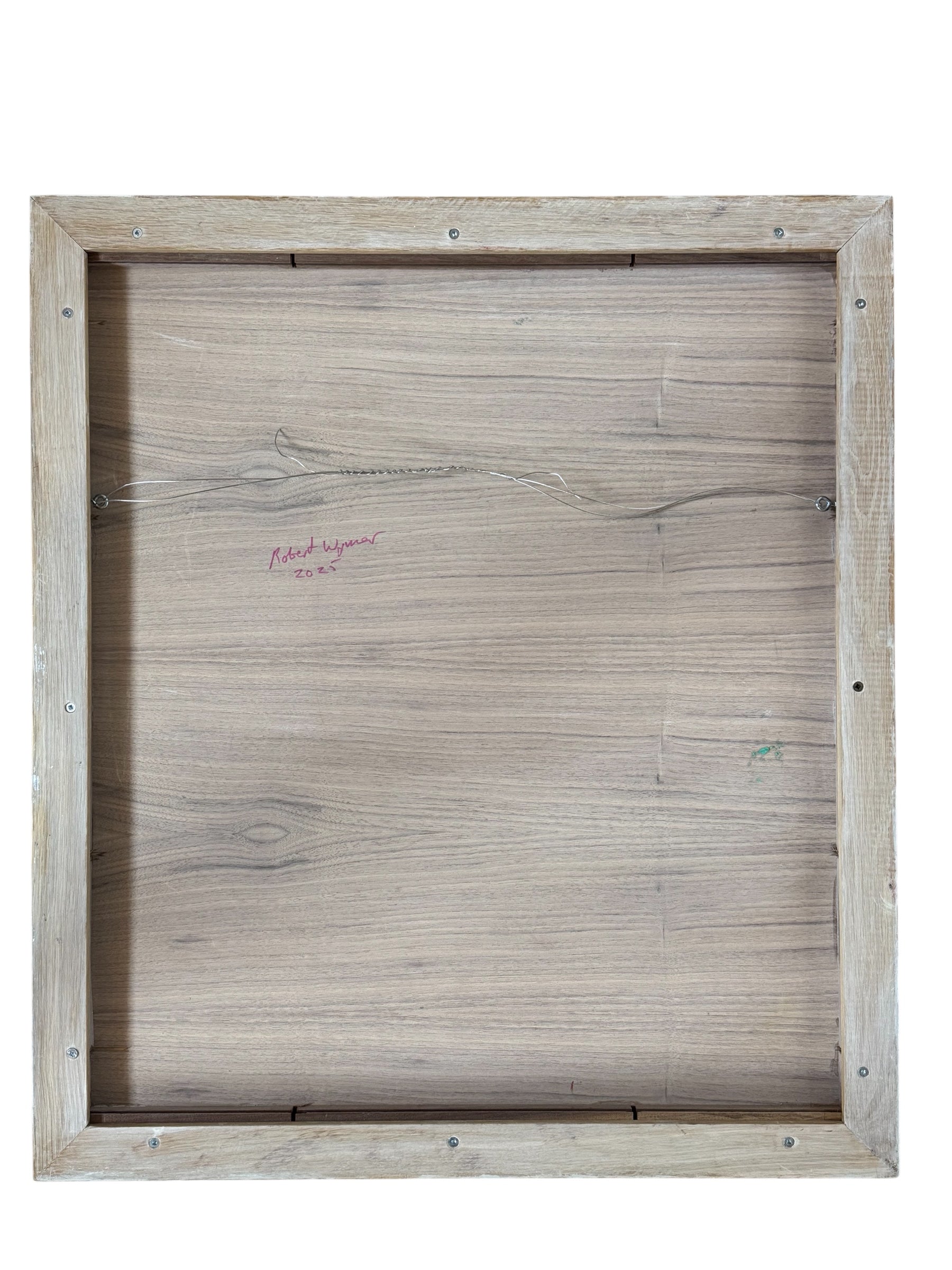 Wymer's  painting's ground was meticulously prepared using traditional rabbit skin glue gesso, a time-honored technique that creates a flexible yet receptive surface, enhancing the longevity and luminosity of the subsequent paint layers, echoing the methods of Old Masters."