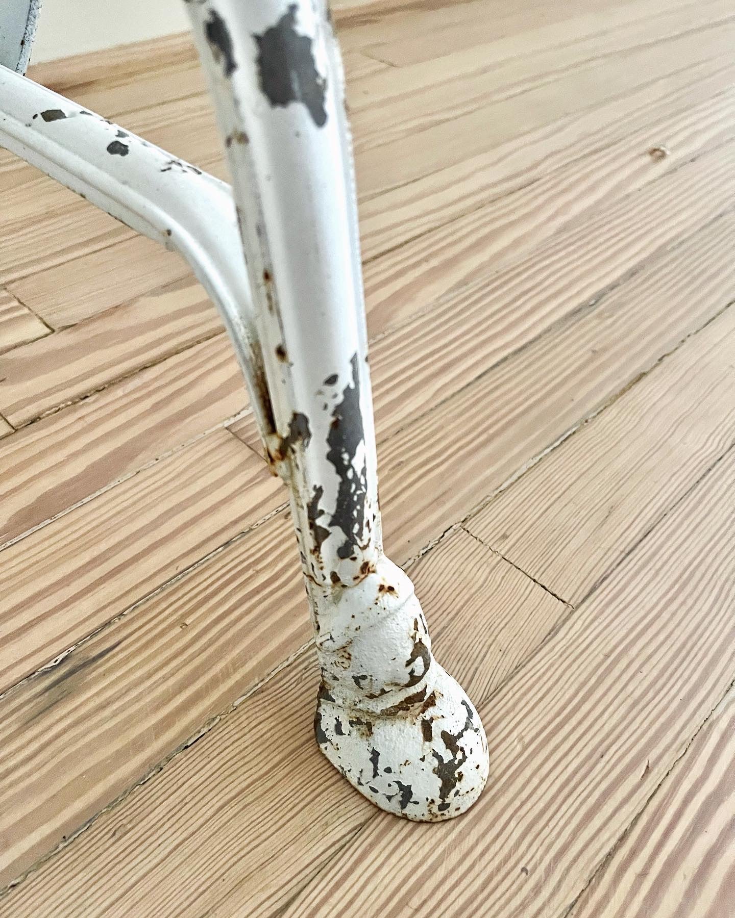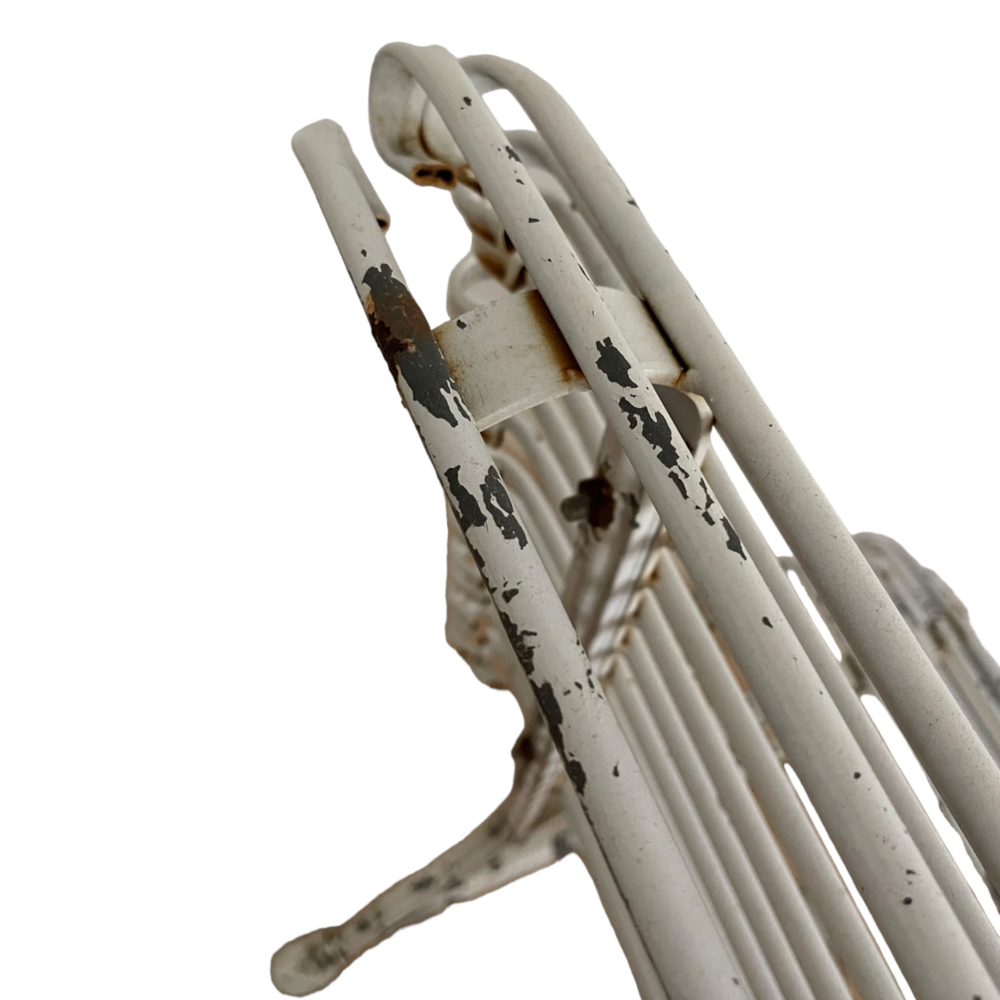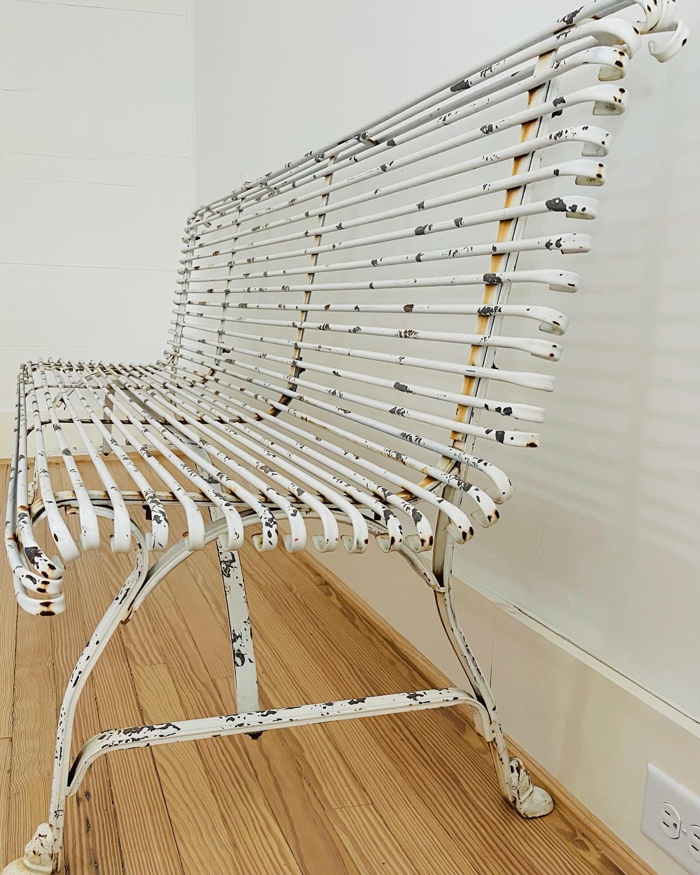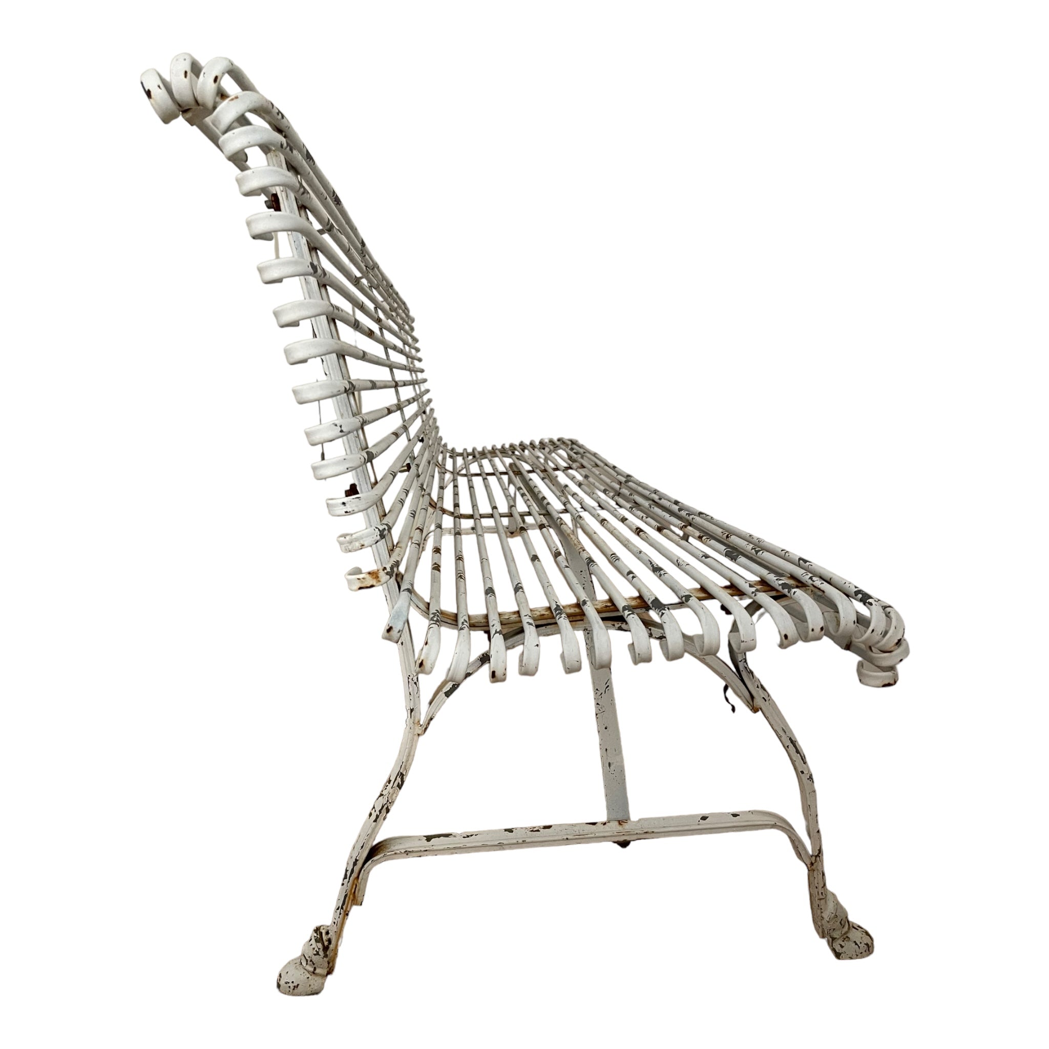 Elevate your outdoor space with this exquisite wrought-iron bench. Featuring elegant lines and lion's paw feet, this antique piece can be used indoors or outdoors. Good condition. Wear consistent with age. Some patina and rust, as shown in photos. Structurally sound and sturdy. Unmarked.