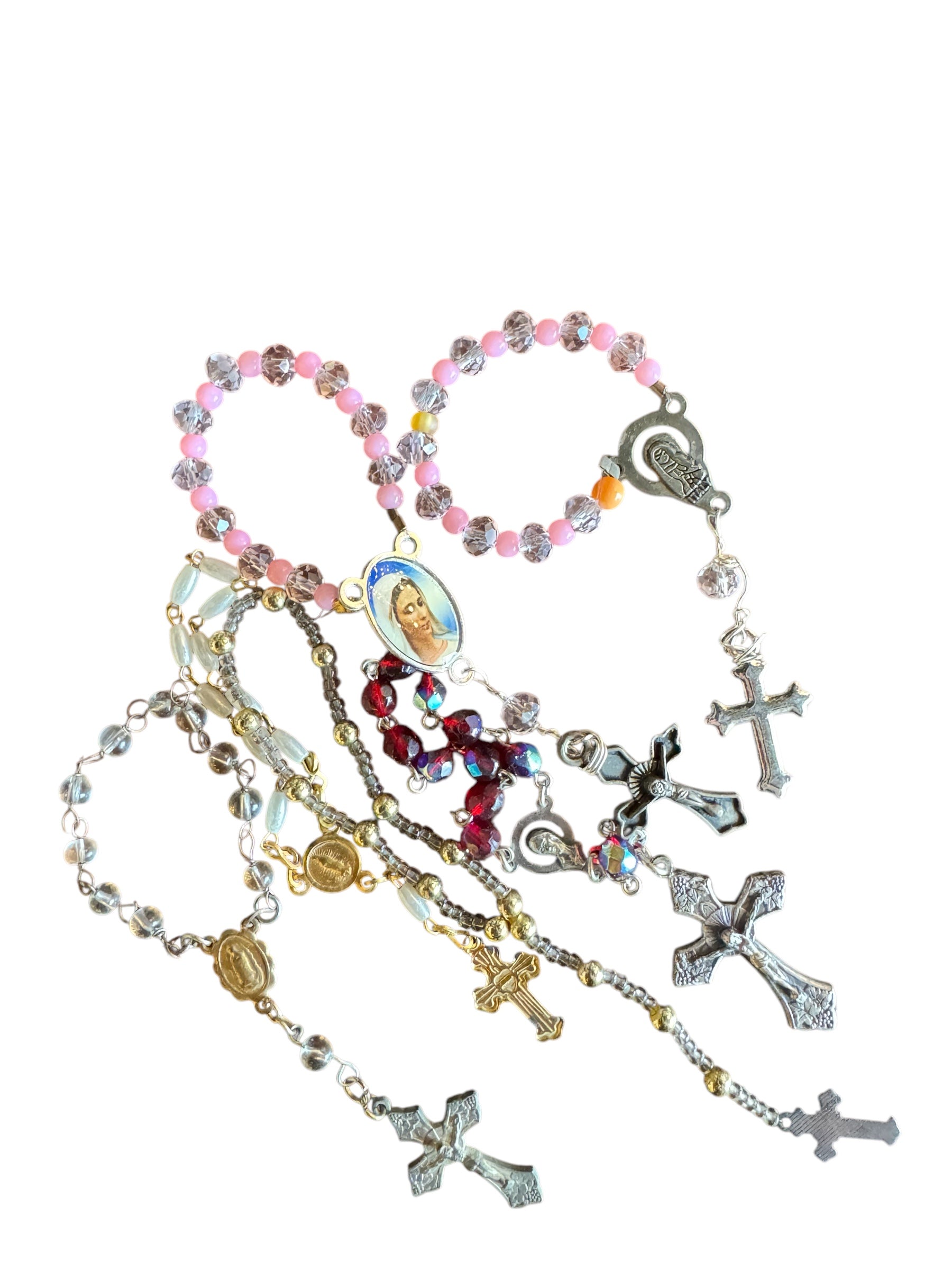 One-of-a-kind pocket rosaries, handmade with care. Each piece carries its own subtle character, a small work of devotion shaped by the artist’s hands. No repeats, no duplicates—just singular pieces made to be kept, gifted, or treasured.