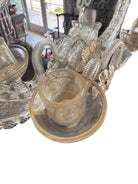 Look closely, and you'll discover the telltale signs of hand-blown glass: subtle bubbles trapped within the clear form, each a testament to the artisan's touch. Glimmers of gold flecks are strategically incorporated into the glass, adding a luxurious warmth and depth to the overall aesthetic.