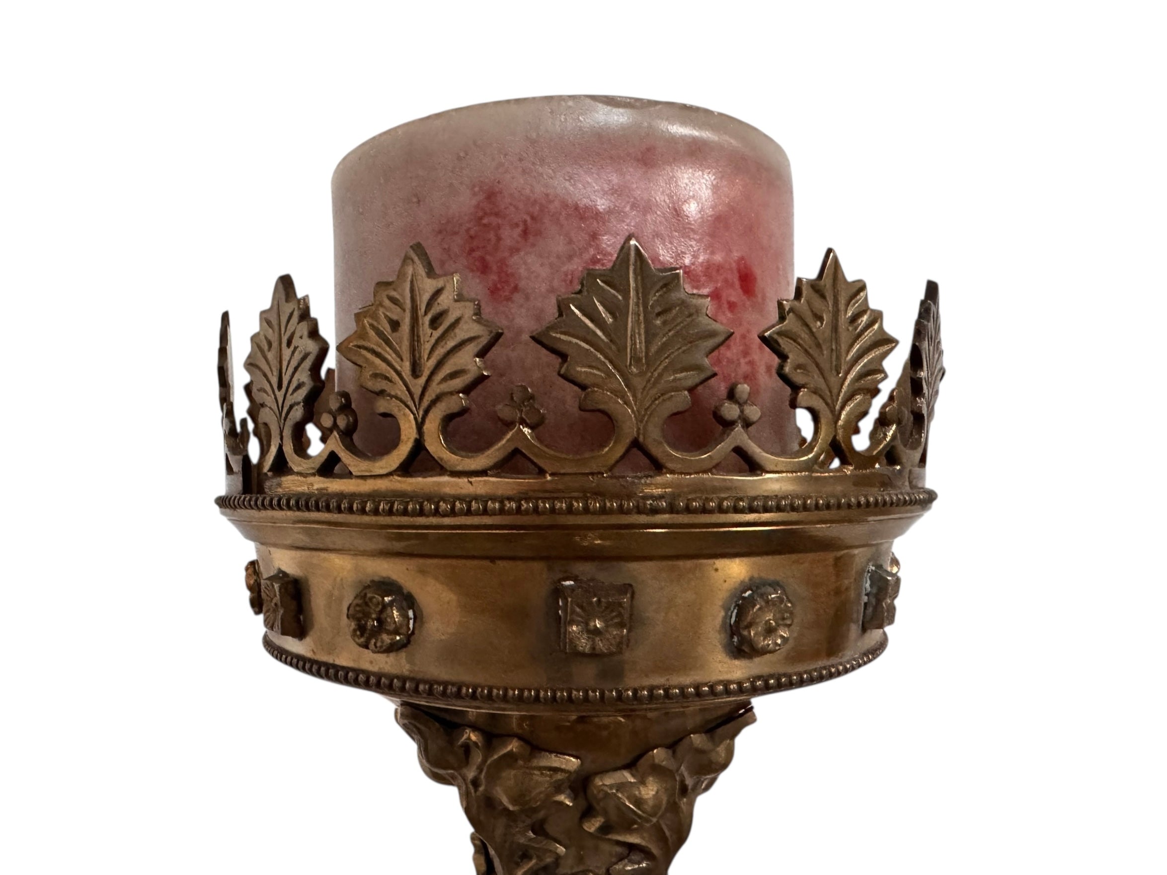 Monumental Gothic Revival Brass Floor Candlestick, Circa 1900