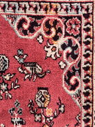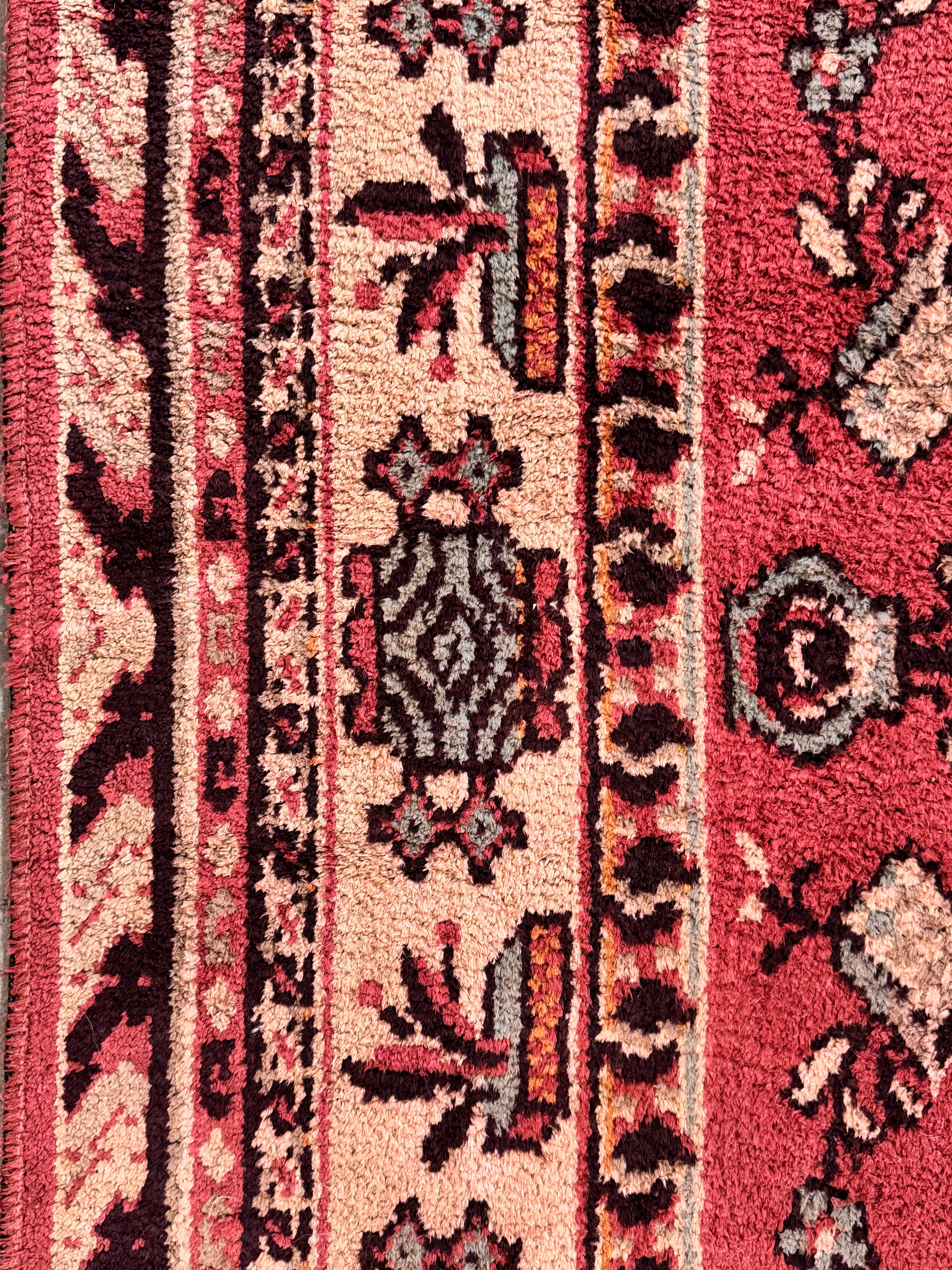 This piece exudes an authentic vintage allure, with its gentle patina and charming imperfections. This pre-loved estate piece is intact, showcasing its storied history through a lovely patina. There is minor surface loss (0.5"-1") and separation at one end of the fringe, adding character and authentic vintage appeal. Professionally cleaned.
