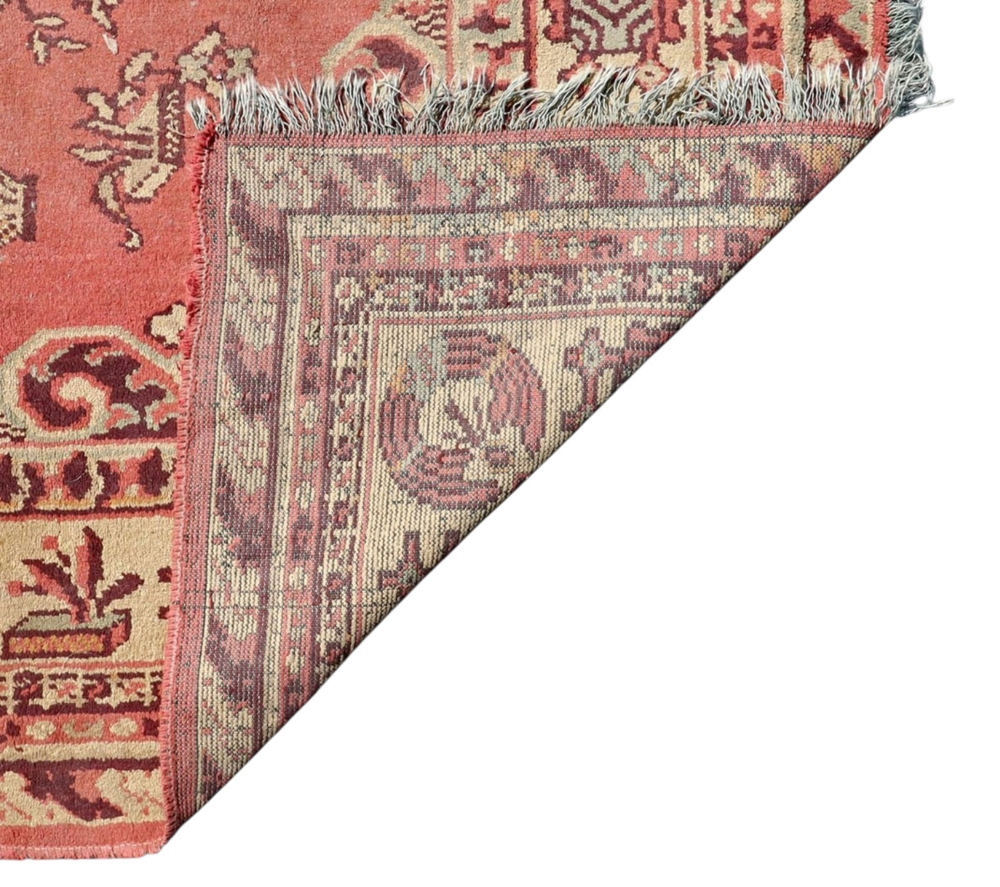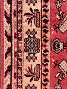 The delicate palette of muted rose and terracotta provides a soft, inviting foundation, artfully interwoven with intricate scrolling vines, palmettes, and floral sprays in shades of cream, beige, and deep burgundy. Its construction features a low, dense pile that, while short, is incredibly soft underfoot, a testament to the high-quality wool and meticulous hand-knotting. This construction not only ensures exceptional durability but also allows the sophisticated details of its design to remain crisp and well-defined, offering a luxurious texture with enduring wear.
