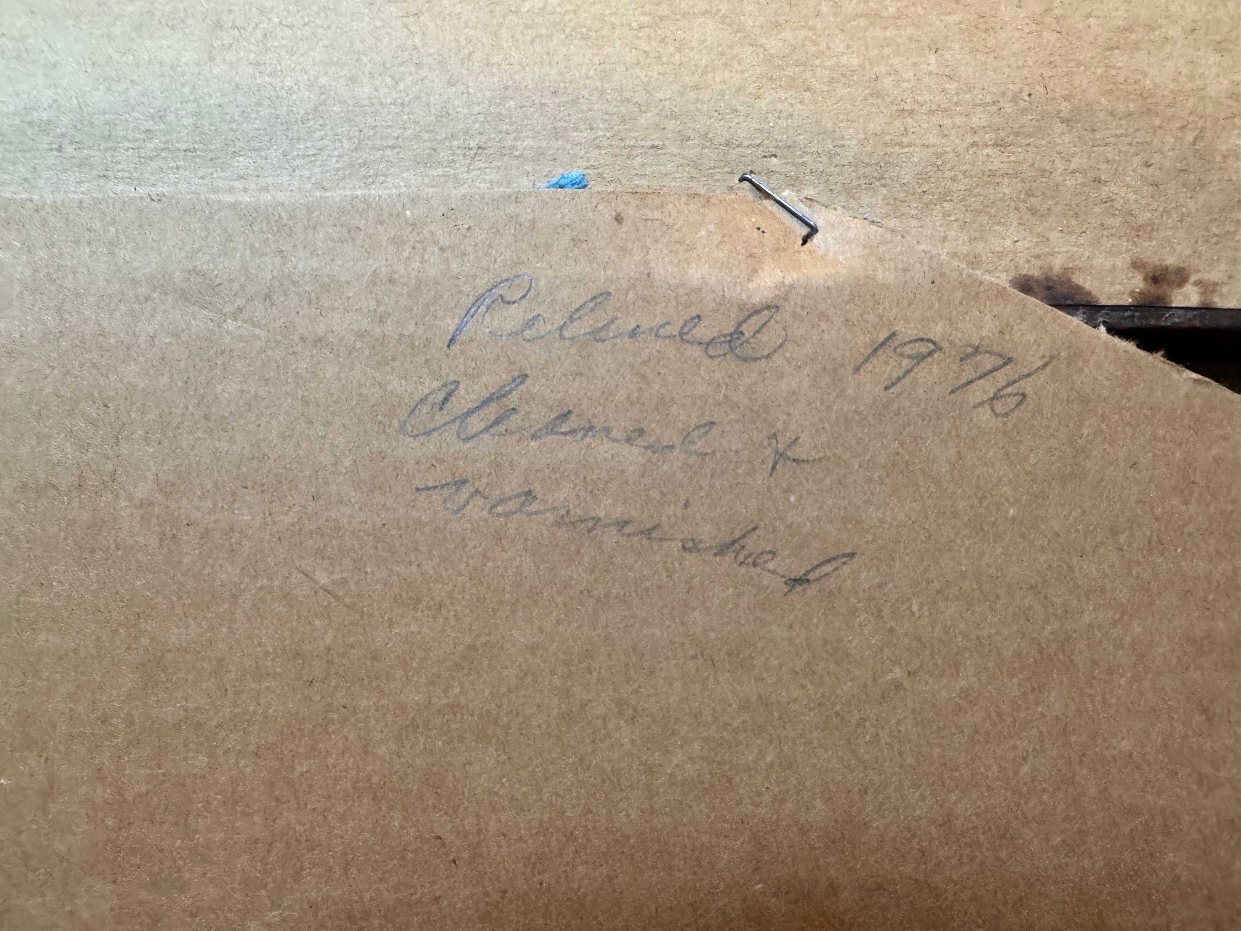 While Michel Rivol may not be a household name, this painting exemplifies the skill and artistic sensibility found among regional artists catering to the demand for decorative paintings during the late 19th century. The painting, lined, cleaned, and revarnished in 1976, bears a history of careful preservation, with stable craquelure that adds to its authentic character.
