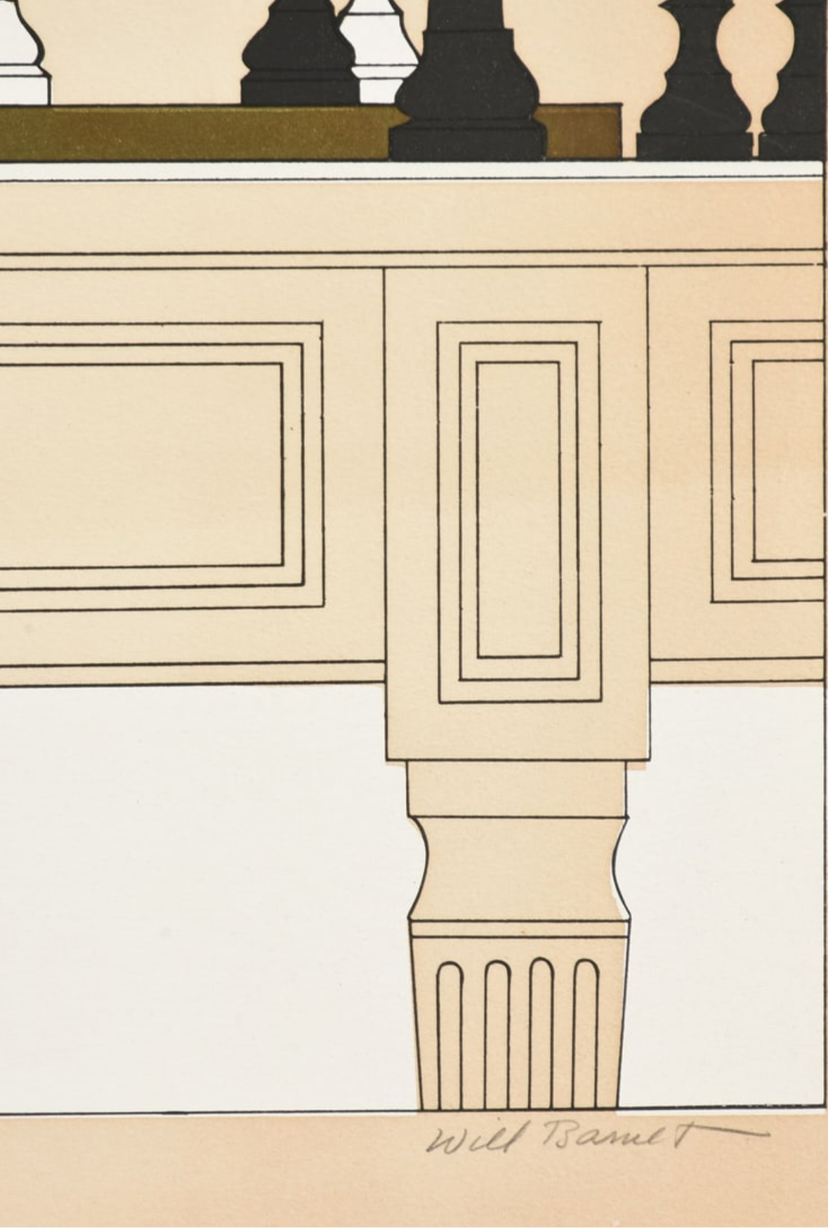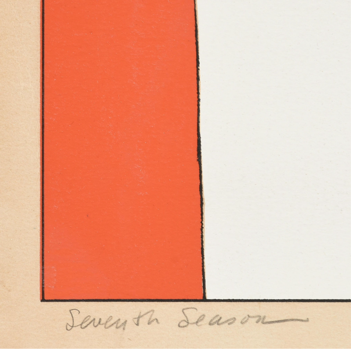 Seventh Season exemplifies Will Barnet's signature style: clean lines and carefully placed volumes of solid color within a minimalist representational framework. While influenced by European trends and integrating a modern visual vocabulary, Barnet’s work remains uniquely American. The artist references personal history through universal themes, inviting viewers to experience the interplay between the intimate and the timeless.