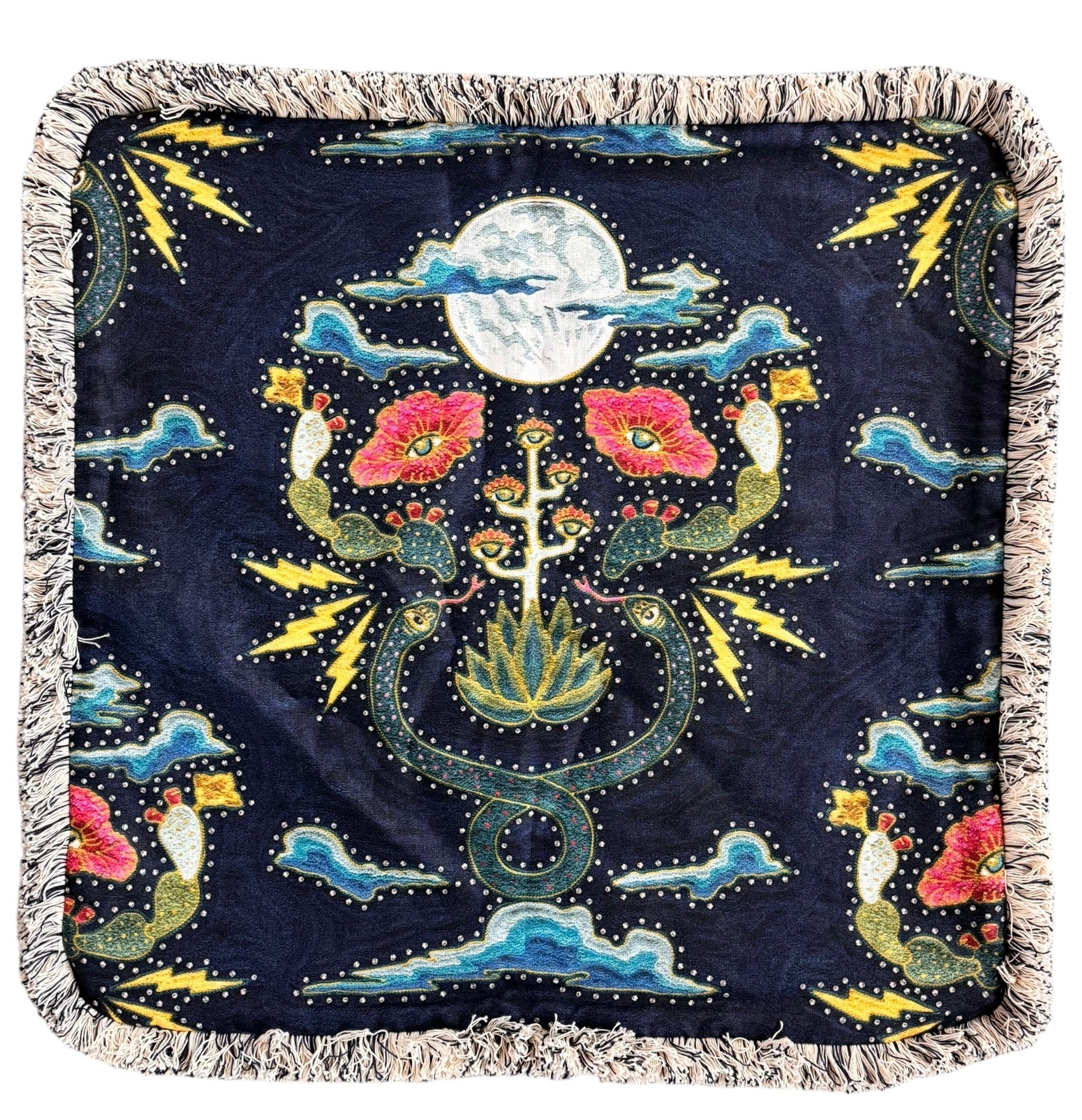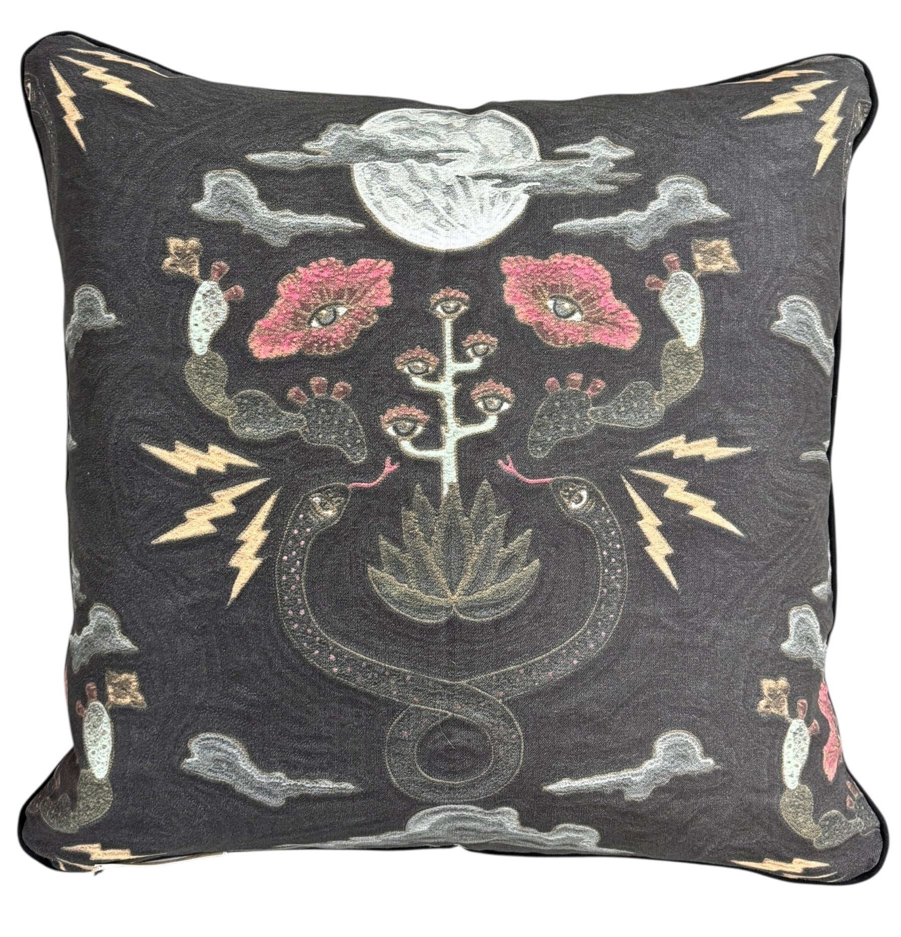 Counterpart Studios, founded by Andrée Chalaron and Stacy Bain in Austin, TX, partnered with the visionary Fort Lonesome and the color-master Paige Russell of Eloi to create these unique pieces. The pillows exemplify their commitment to bringing bold and decadent designs into homes, transforming personal spaces into legendary havens. The unique aesthetic is inspired by Fort Lonesome’s timeless designs and Eloi's exuberant color palettes, resulting in pieces that are both accessible and artistically elevated.