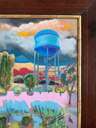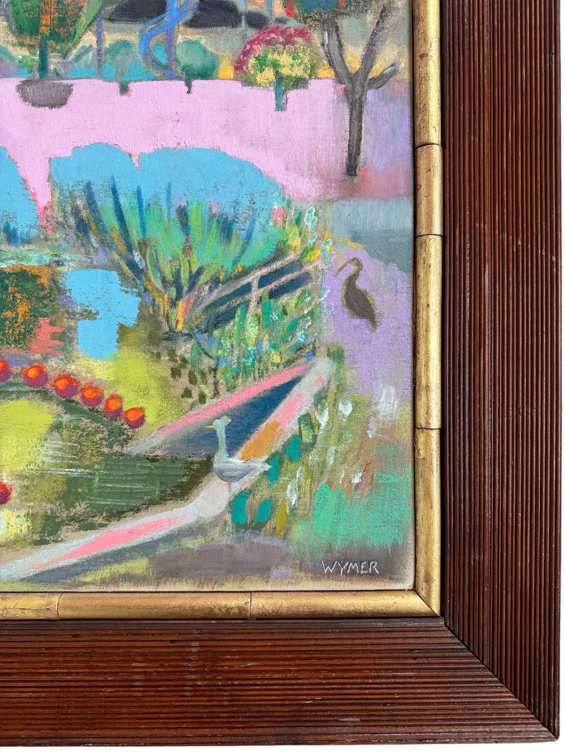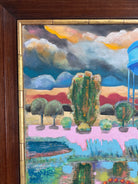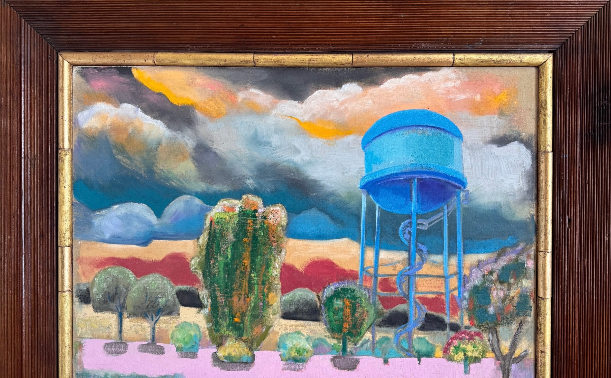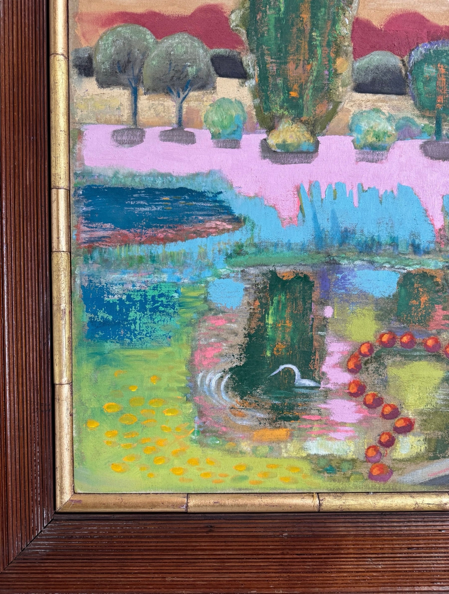 Oil on linen board with redwood frame. Gold leaf trim.