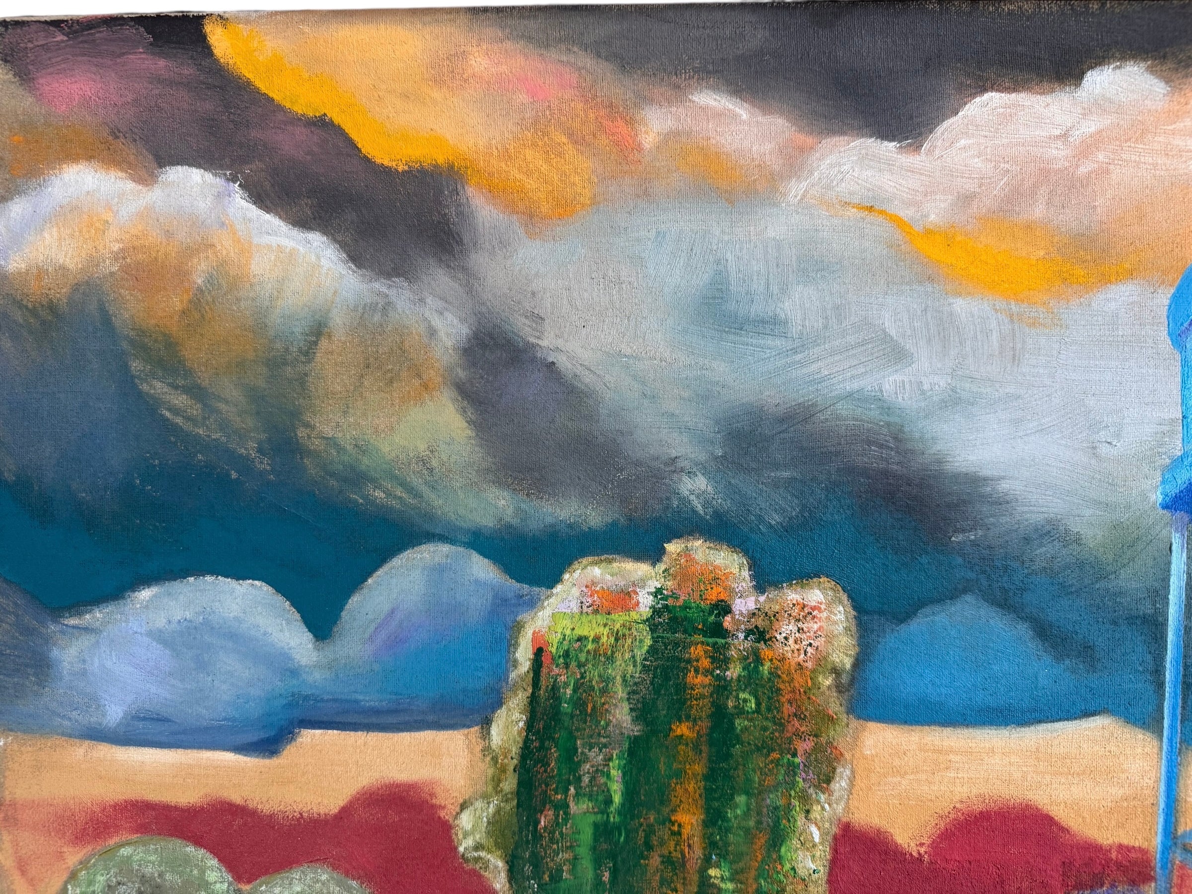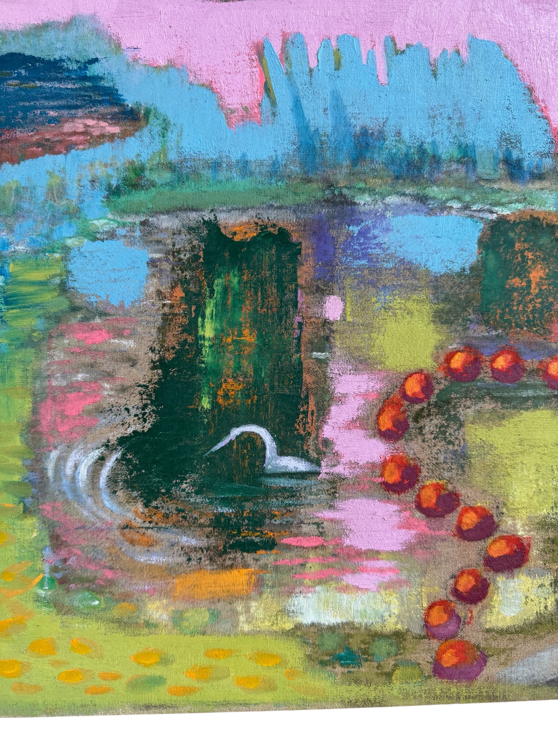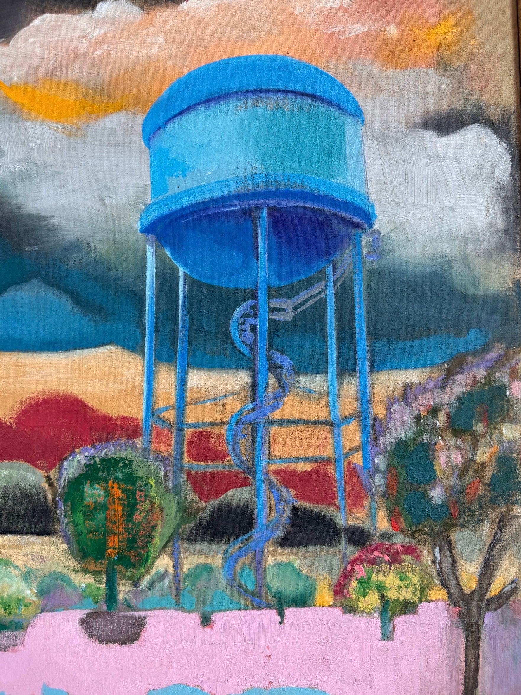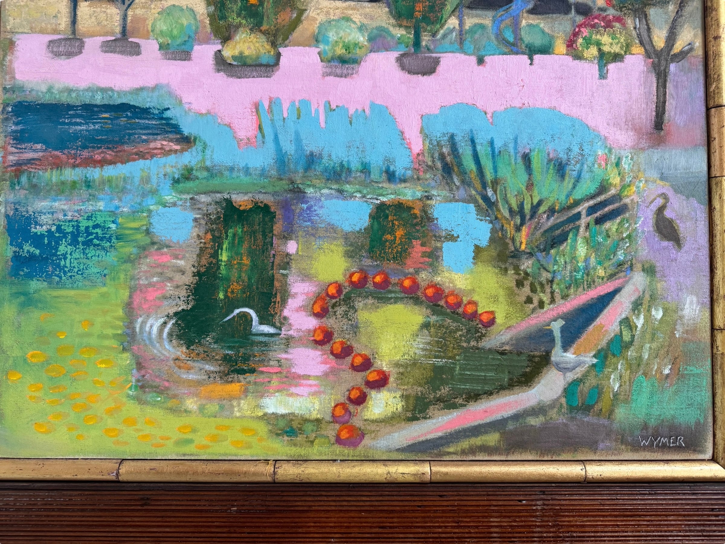 Oil on linen board with redwood frame. Gold leaf trim.