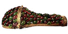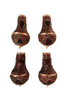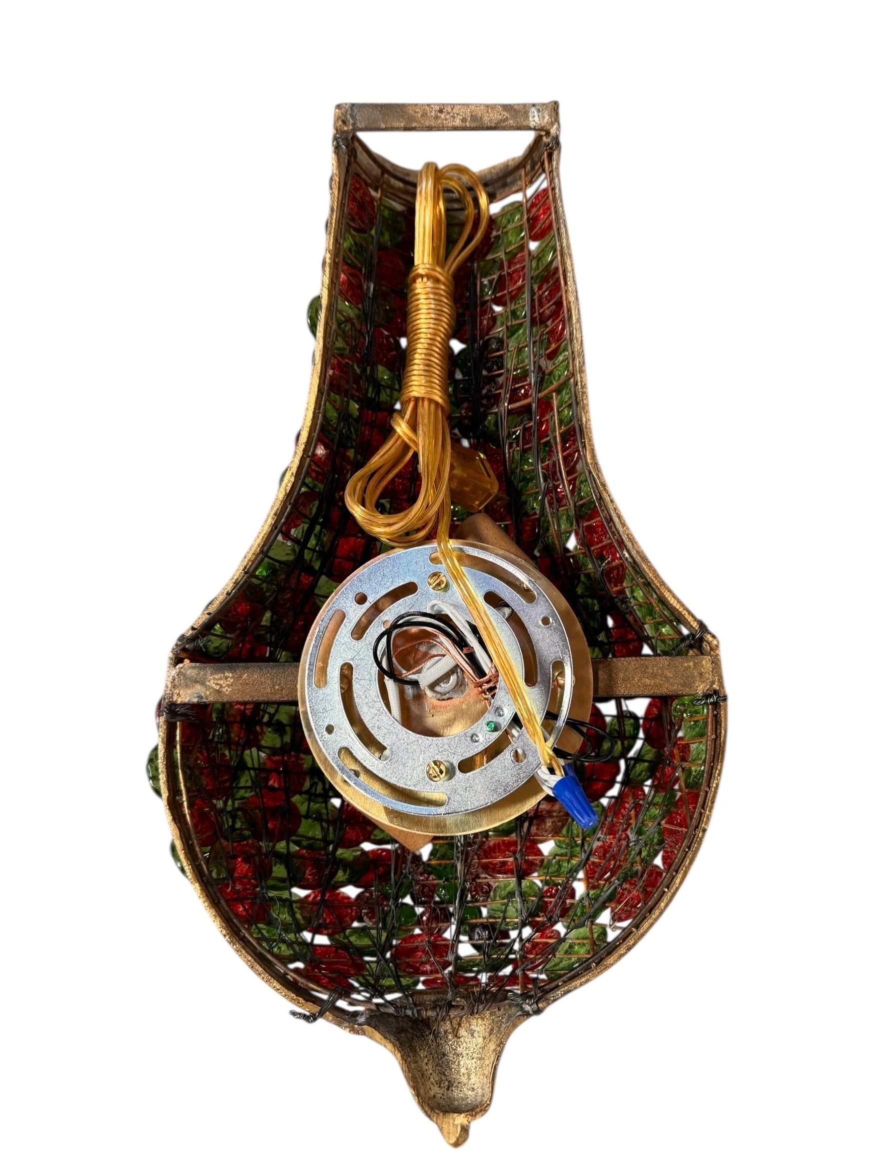 Presenting an exquisitely crafted sconce, a true testament to artisanal design and captivating aesthetics. This distinctive piece boasts a graceful teardrop silhouette, meticulously adorned with a vibrant mosaic of glass elements and luminous beadwork.
