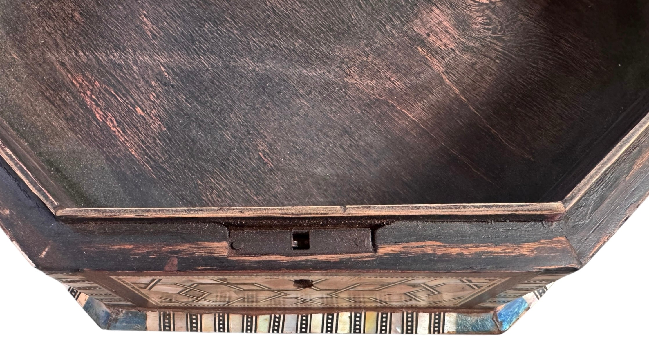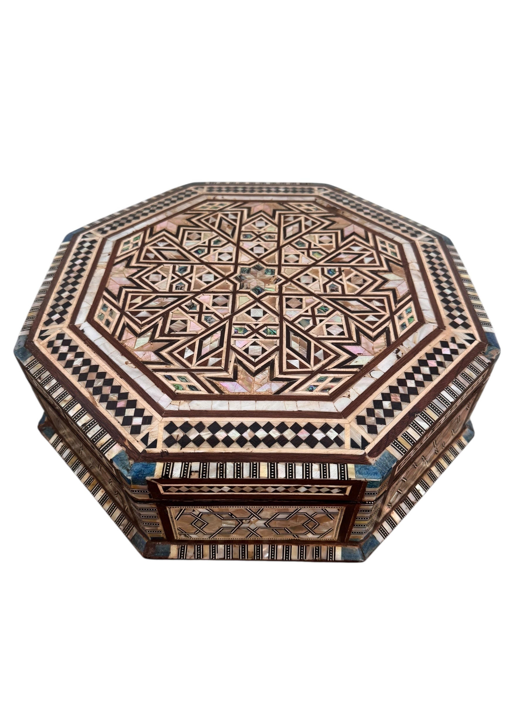 The real magic is in the patterns. Look closely, and you'll see a world of stars, squares, and other shapes, all interlocking perfectly. Thousands of tiny pieces, sometimes no bigger than a grain of rice, are precisely cut and laid side-by-side. This incredible effort turns simple shapes into a beautiful, flowing design that's a feast for the eyes. The way the dark wood contrasts with the bright, glowing shell, and the solid bone next to the vibrant colors, creates a truly captivating look. These Syrian inlaid boxes are a true blend of beauty and skill, showing off a rich cultural history and the timeless appeal of something handmade with such care and precision. They are little treasures, made to be admired and cherished.
