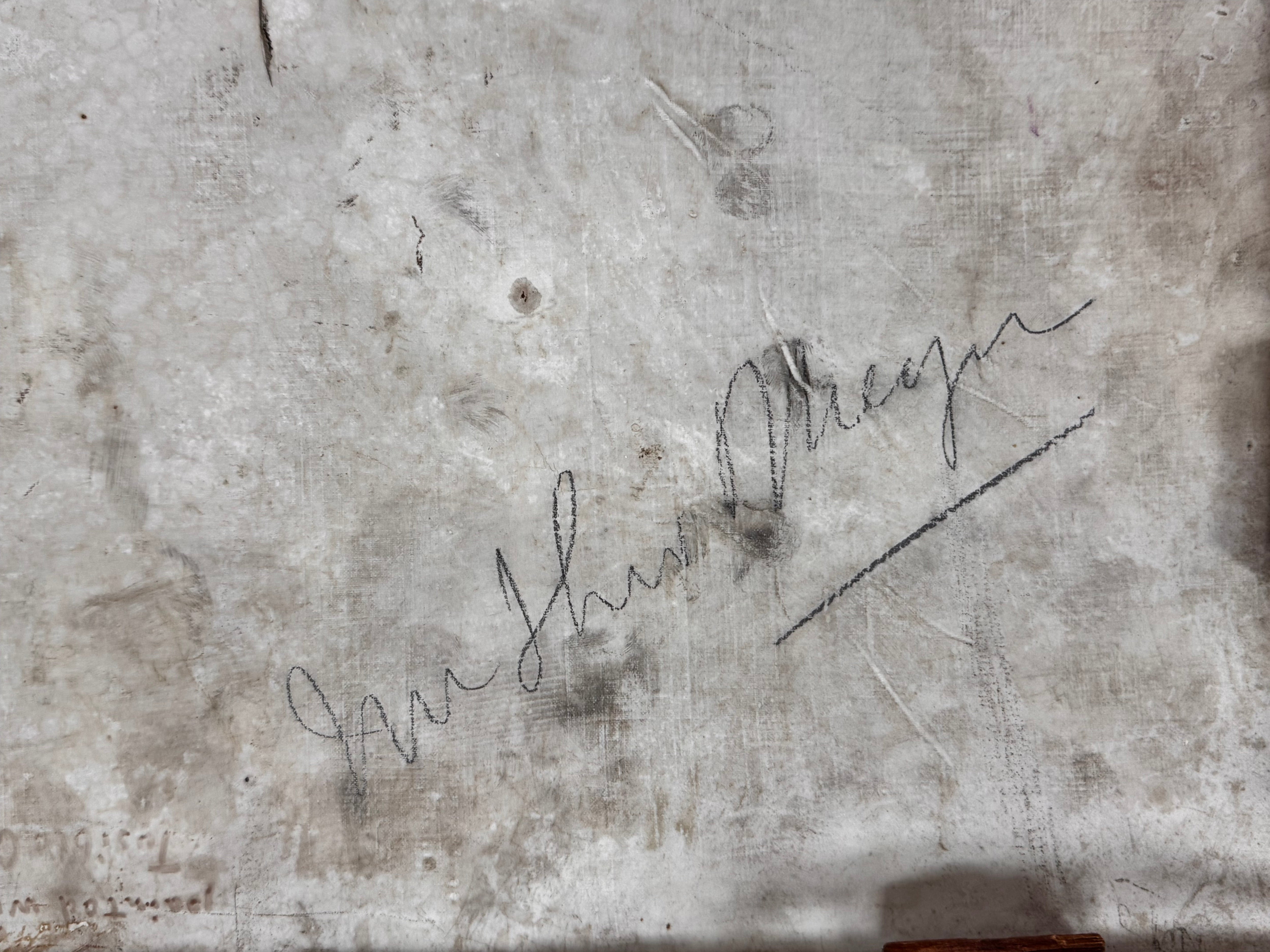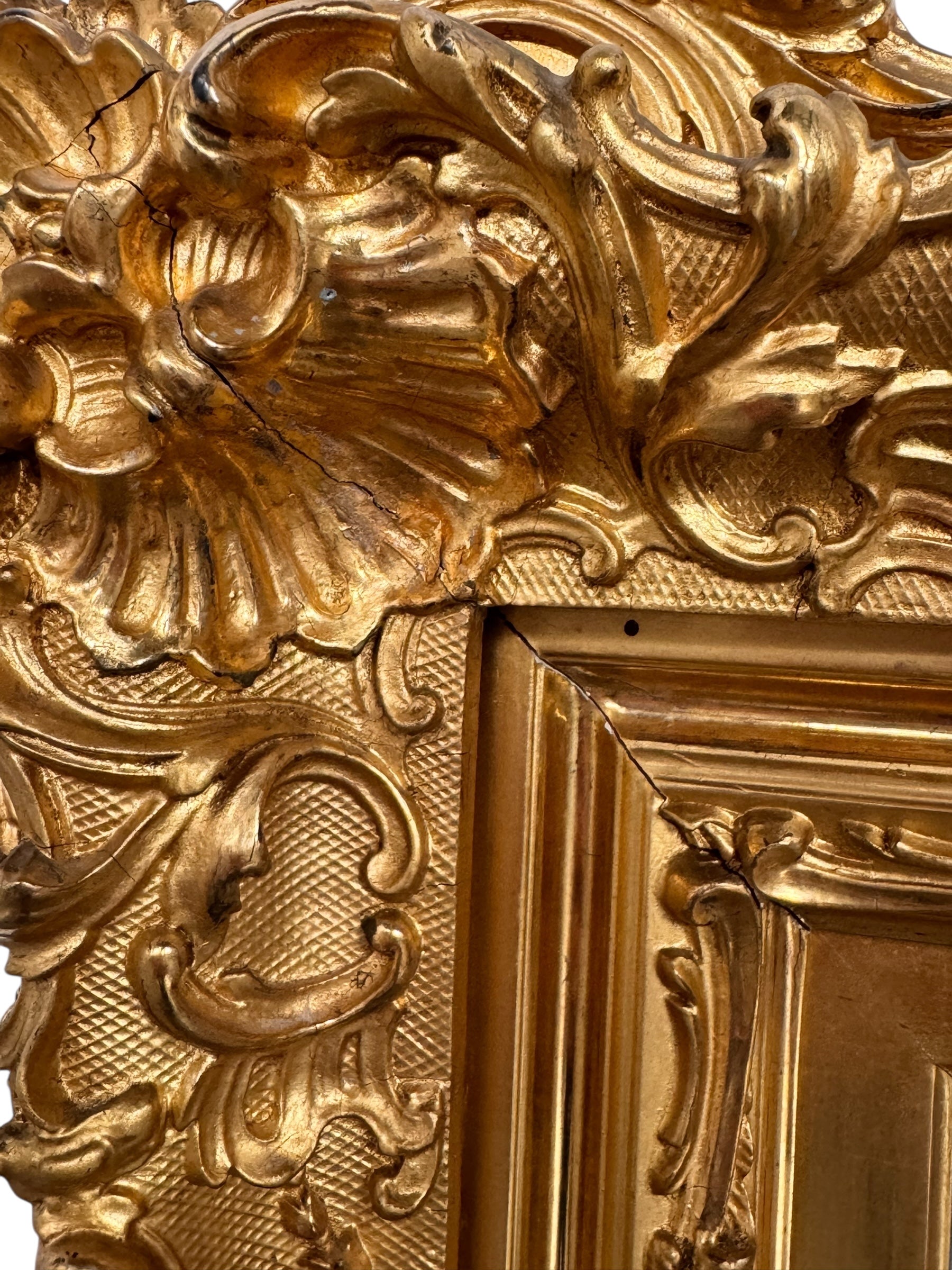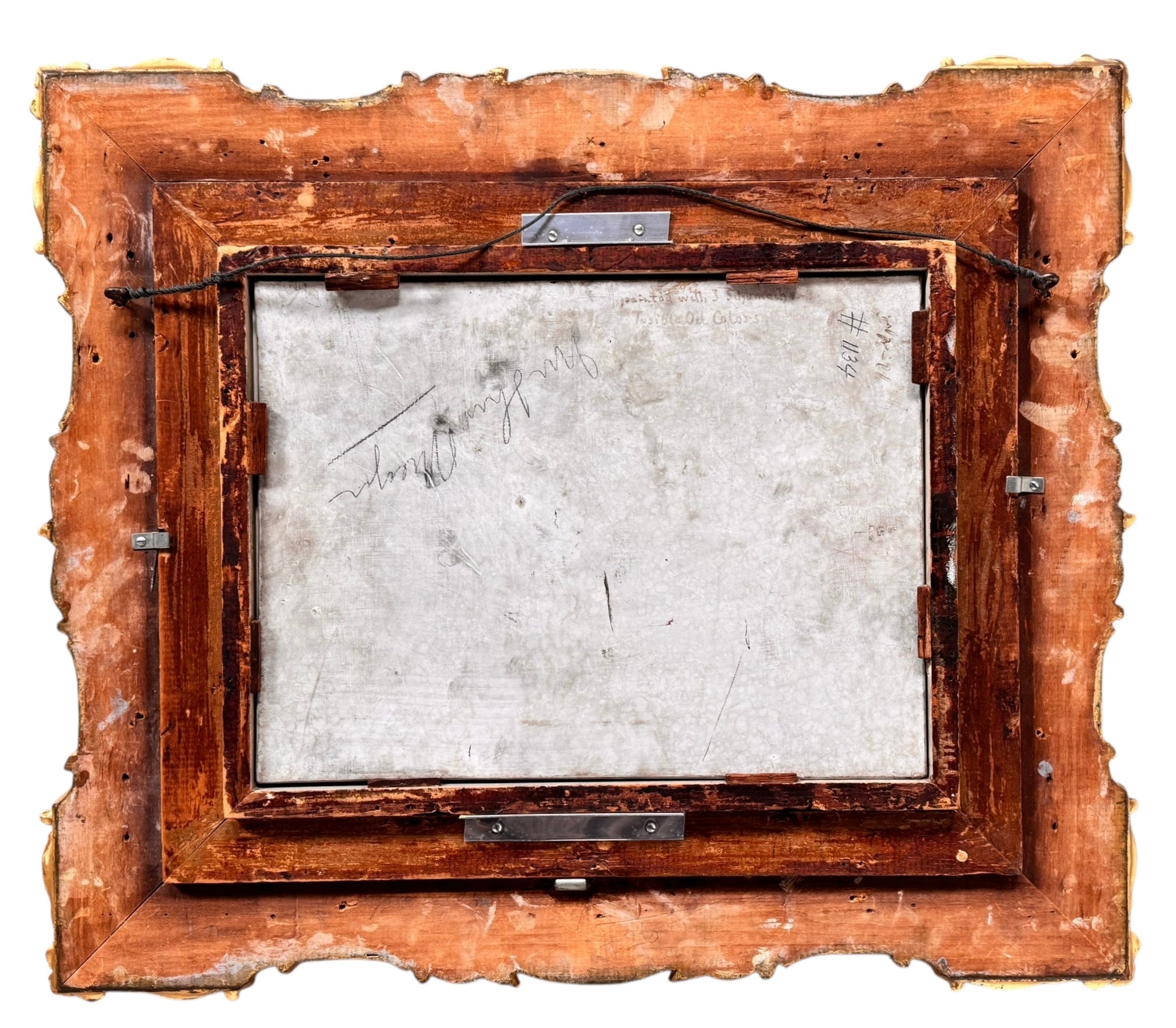 The painting is presented in its original, ornate period-style gold frame. While exhibiting age-appropriate wear and visible cracks that reflect its rich history, the frame's elaborate detailing continues to underscore the work's inherent preciousness. This piece stands as a sophisticated fusion of high-art materials and everyday subject matter, offering a timeless window into a vanishing way of American life.