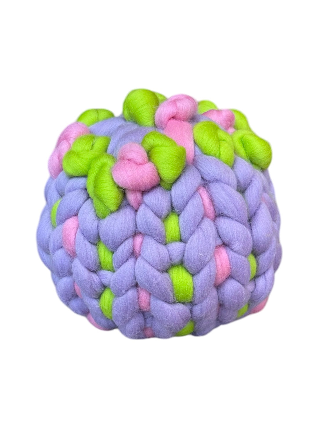 Hand crocheted in California, each unique Swish Monkey Pouffette has been lovingly created with European hand-dyed spun Merino Wool.