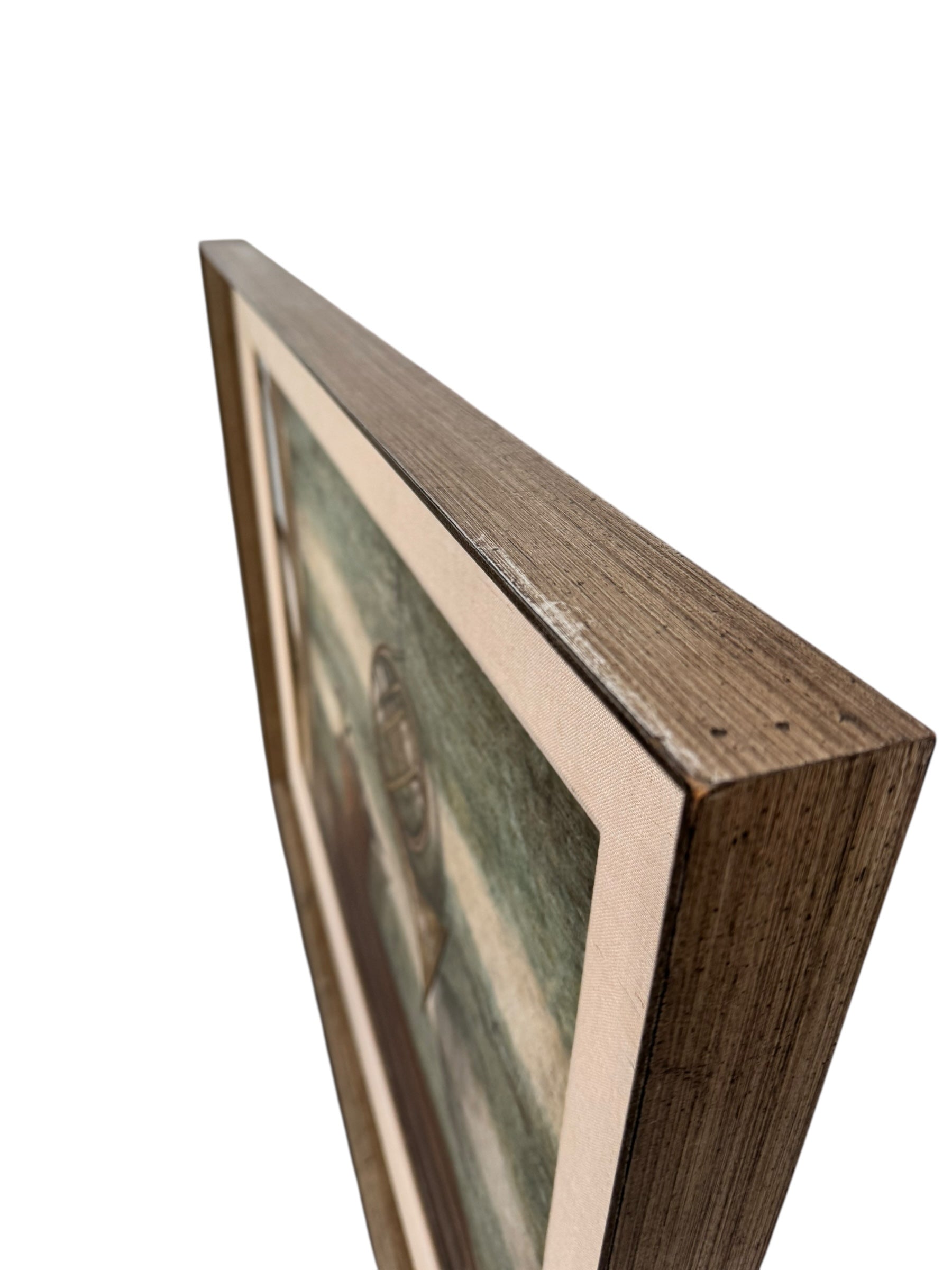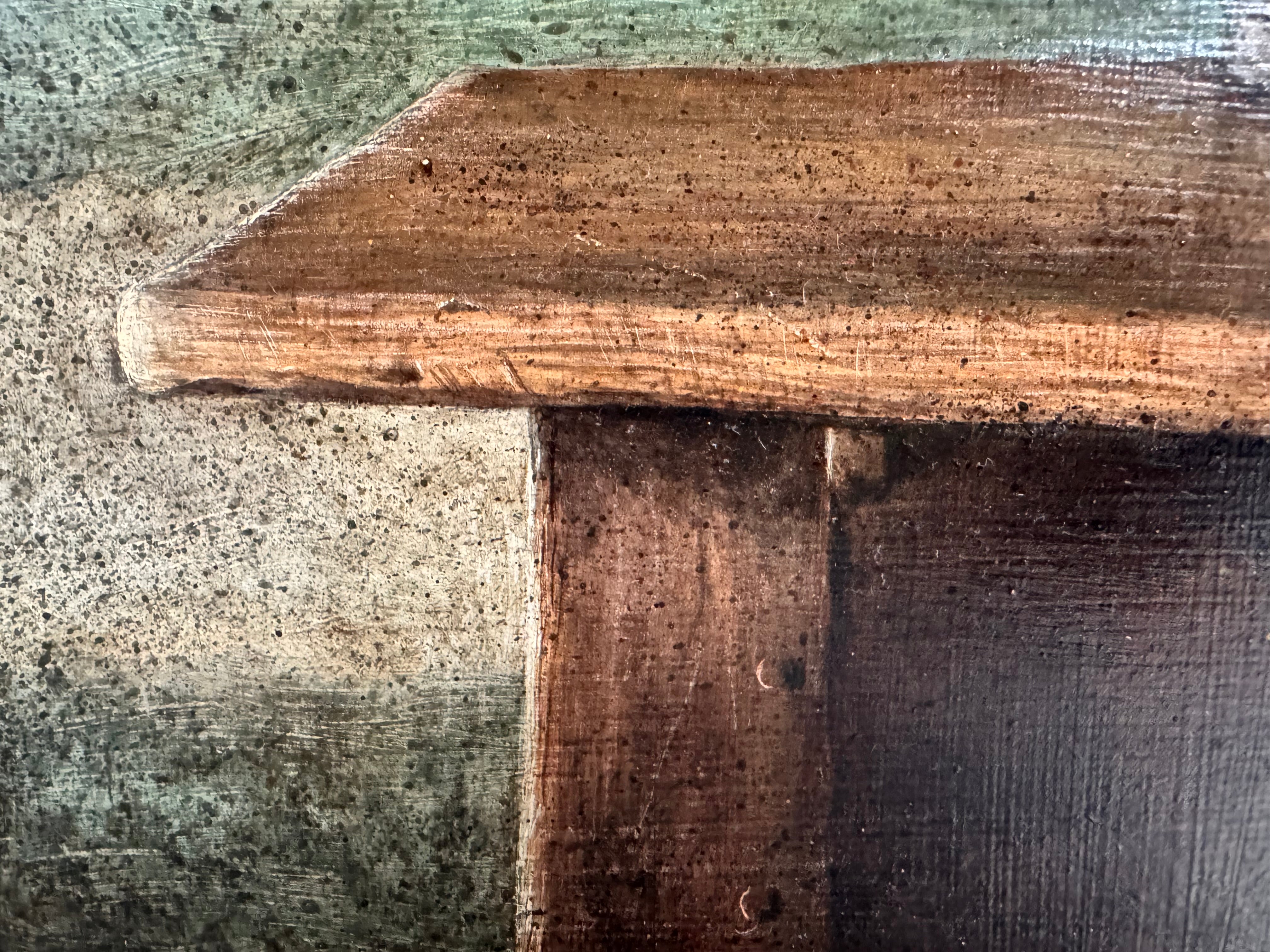 Executed in acrylic on Masonite, the work’s muted palette and textured surface amplify its atmospheric stillness. Whitfield’s careful orchestration of form and space suggests themes of silence, potential, and the tension between the natural and the constructed. Rather than prescribing meaning, Canvas Duck invites slow looking—allowing the viewer’s own associations to quietly complete the image.